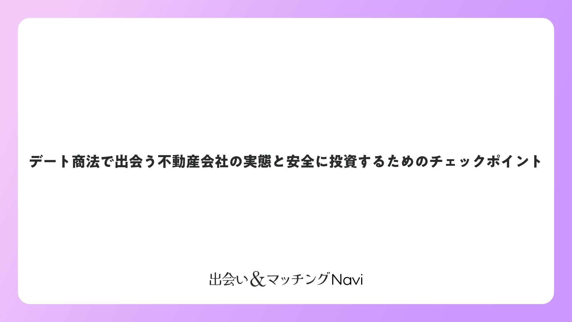 デート商法で出会う不動産会社の実態と安全に投資するためのチェックポイントをまとめました