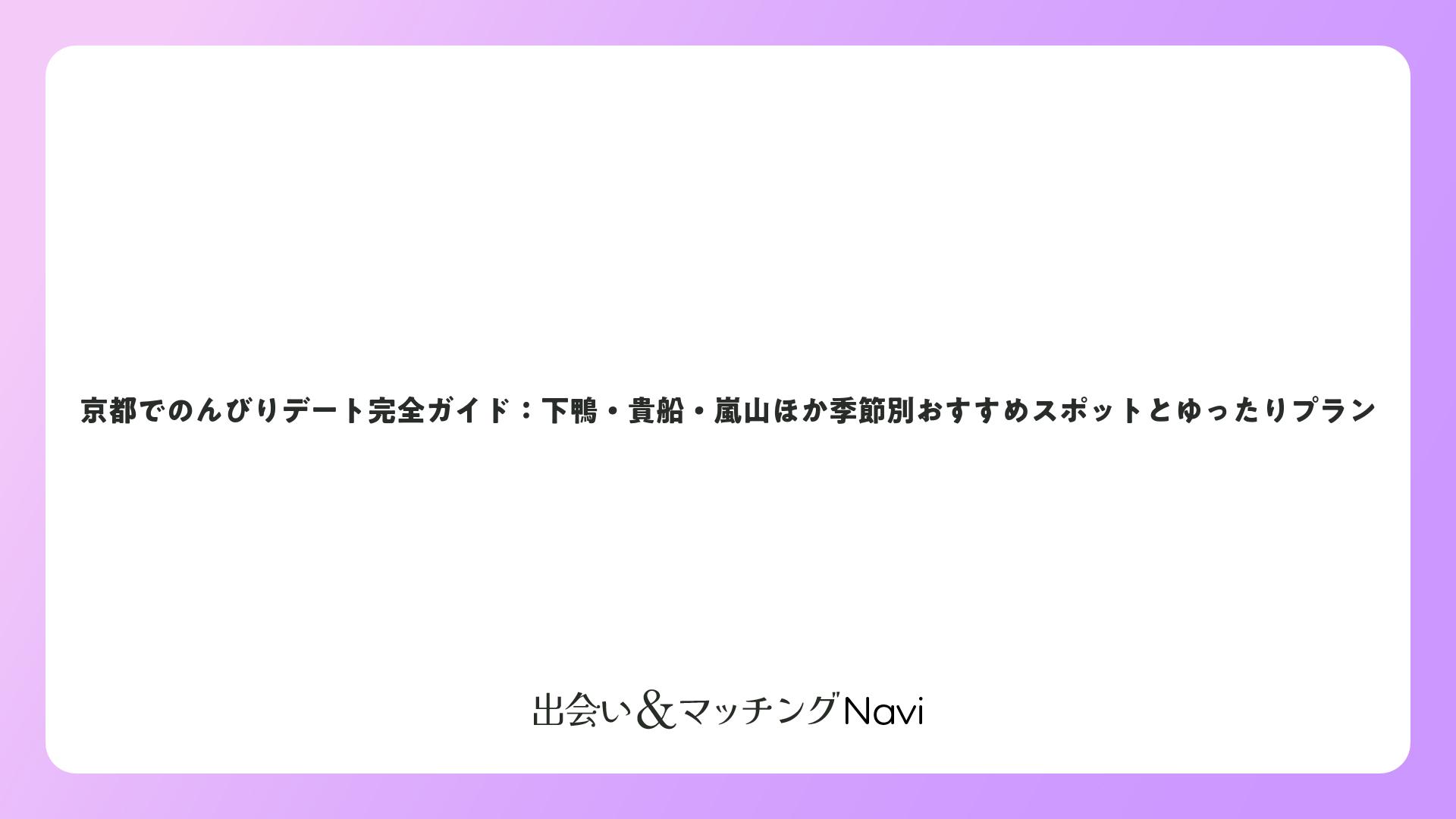 京都でのんびりデート完全ガイド:下鴨・貴船・嵐山ほか季節別おすすめスポットとゆったりプラン