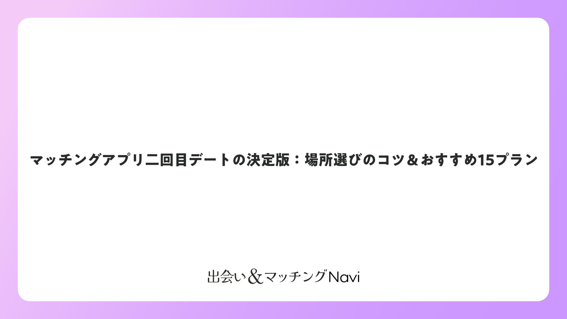 マッチングアプリ二回目デートの決定版:場所選びのコツ&おすすめ15プランをまとめました