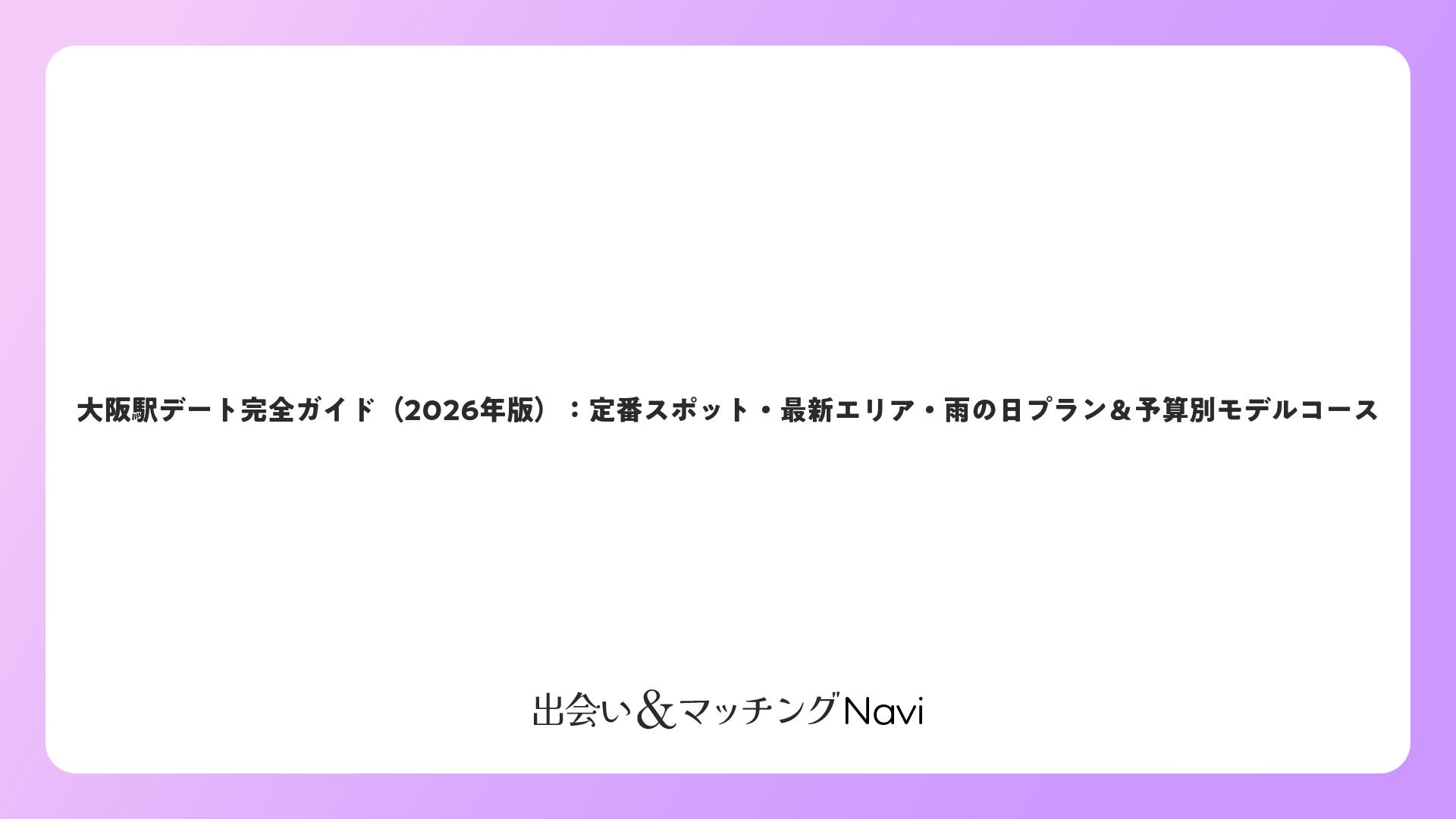 大阪駅デート完全ガイド(2026年版):定番スポット・最新エリア・雨の日プラン&予算別モデルコースをまとめました