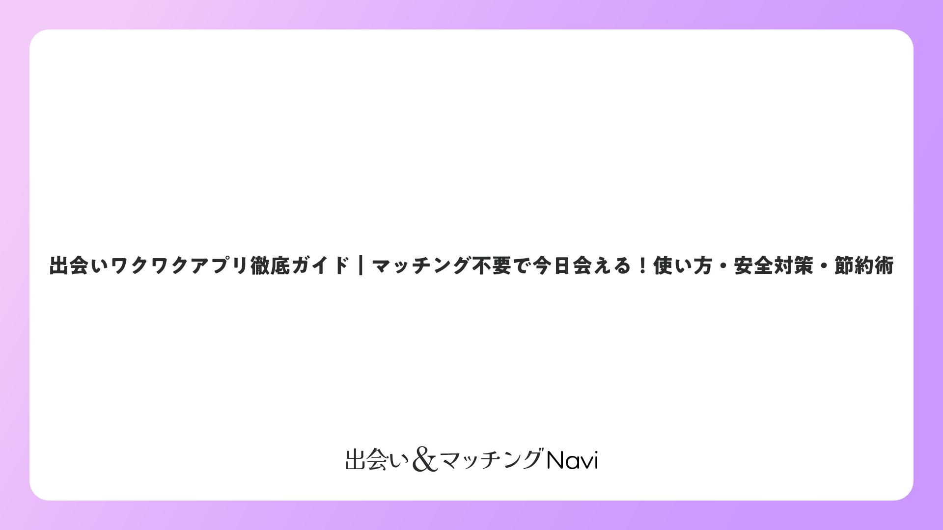 出会いワクワクアプリ徹底ガイド|マッチング不要で今日会える!使い方・安全対策・節約術をまとめました