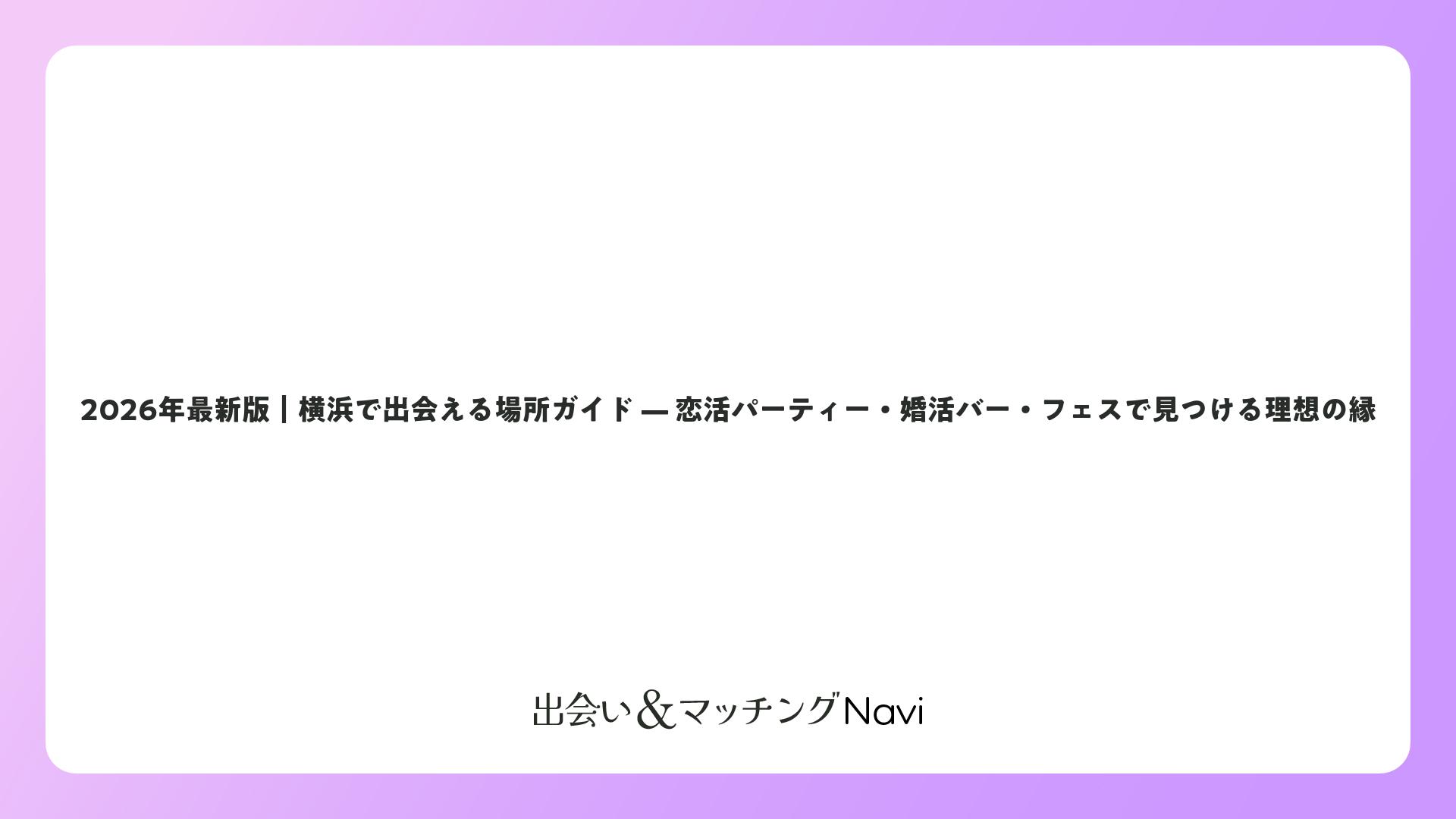 2026年最新版|横浜で出会える場所ガイド — 恋活パーティー・婚活バー・フェスで見つける理想の縁をまとめました