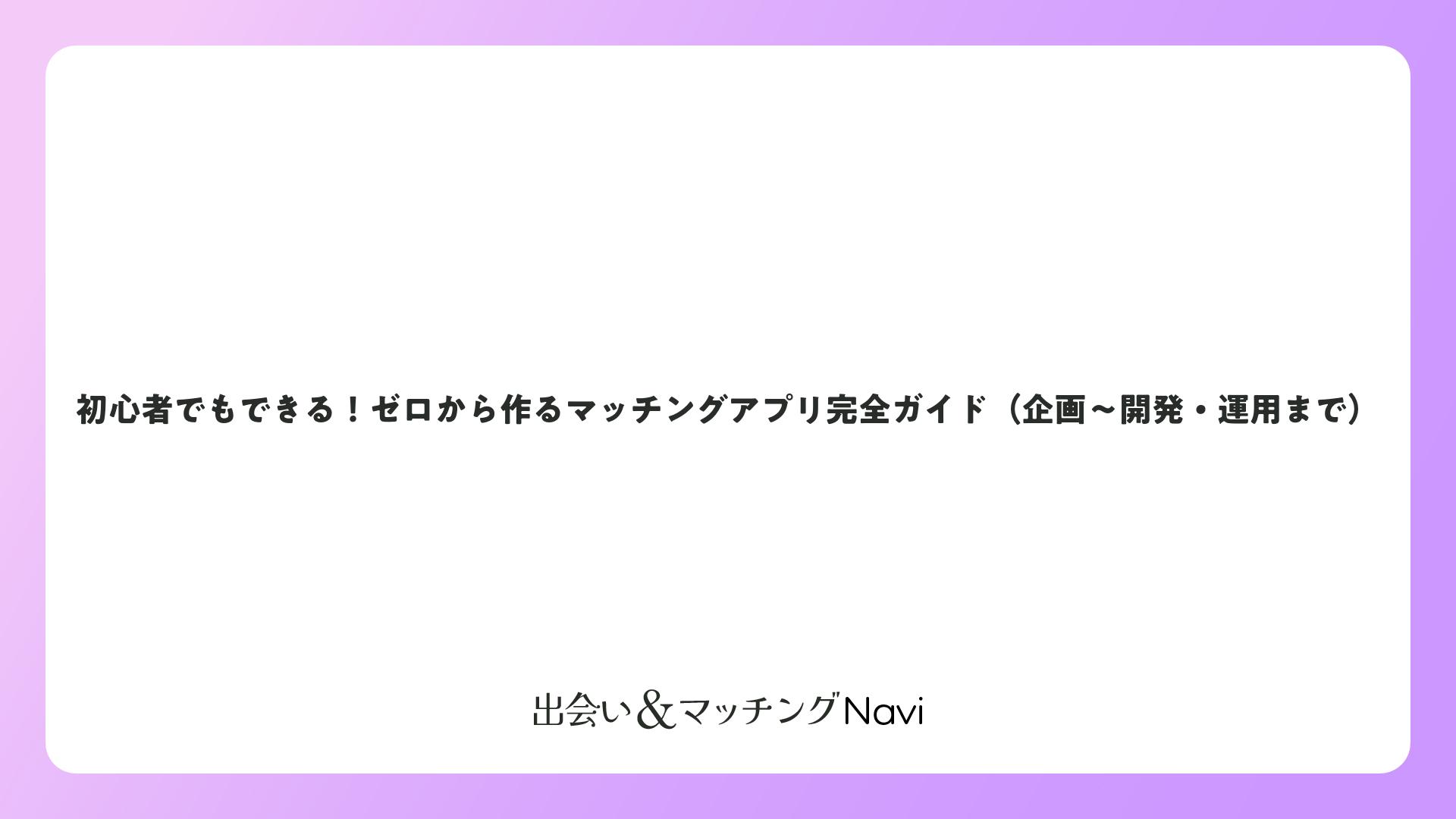 初心者でもできる!ゼロから作るマッチングアプリ完全ガイド(企画~開発・運用まで)