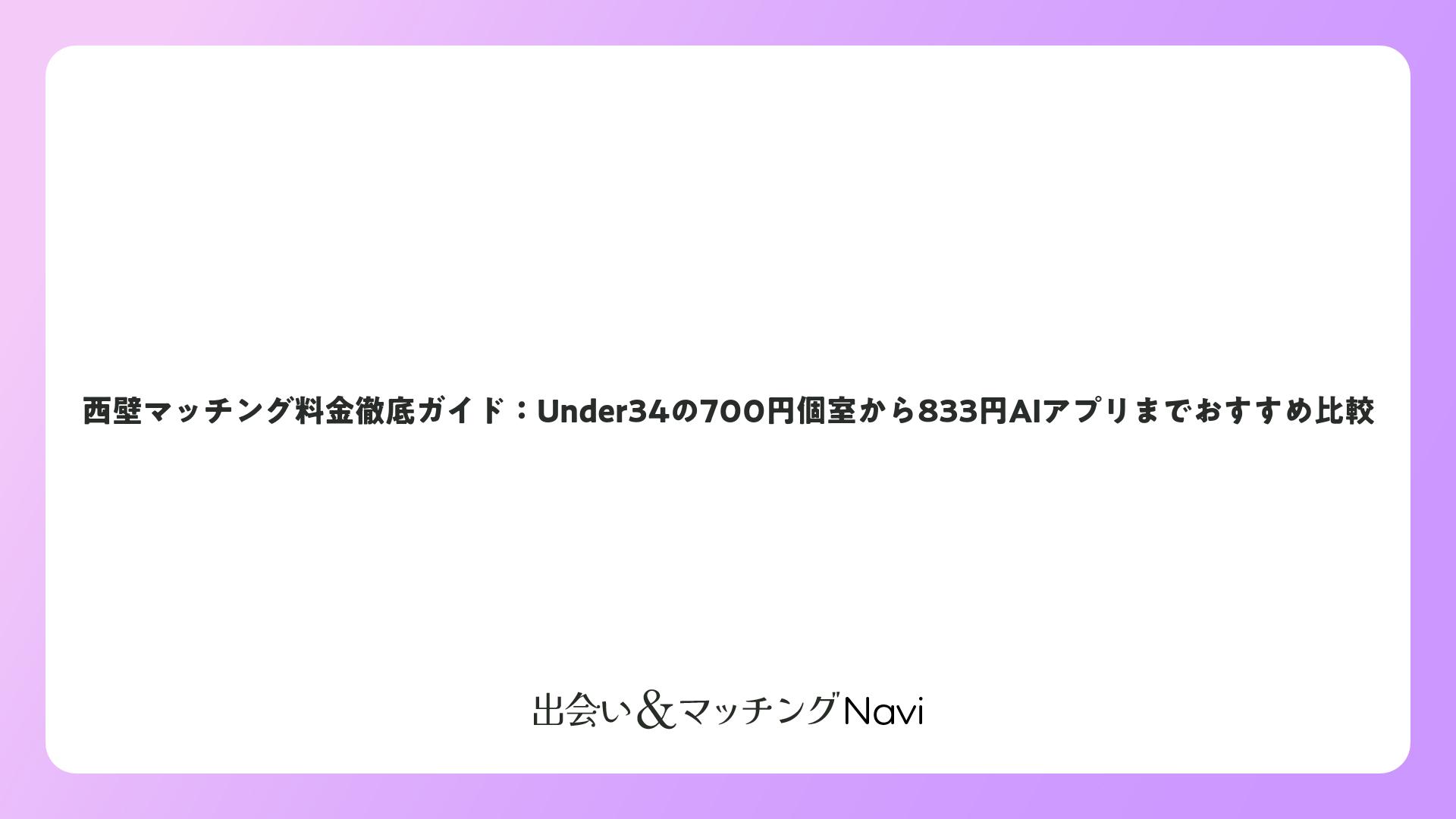 西壁マッチング料金徹底ガイド:Under34の700円個室から833円AIアプリまでおすすめ比較をまとめました