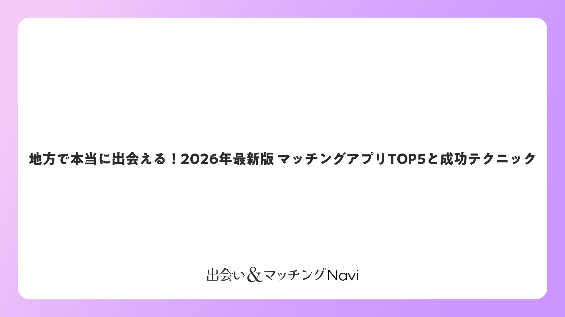地方で本当に出会える!2026年最新版 マッチングアプリTOP5と成功テクニックをまとめました