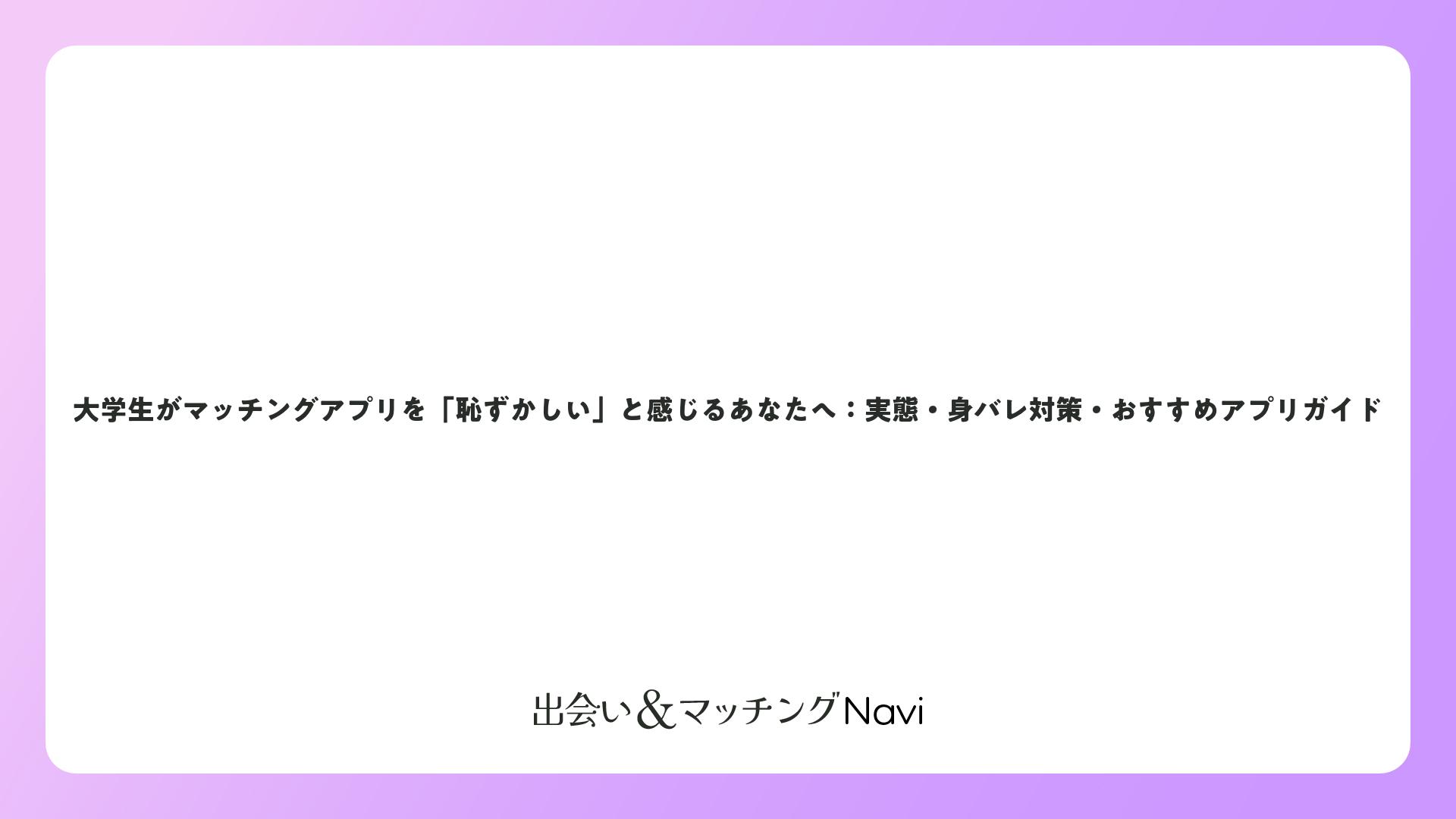 大学生がマッチングアプリを「恥ずかしい」と感じるあなたへ:実態・身バレ対策・おすすめアプリガイドをまとめました