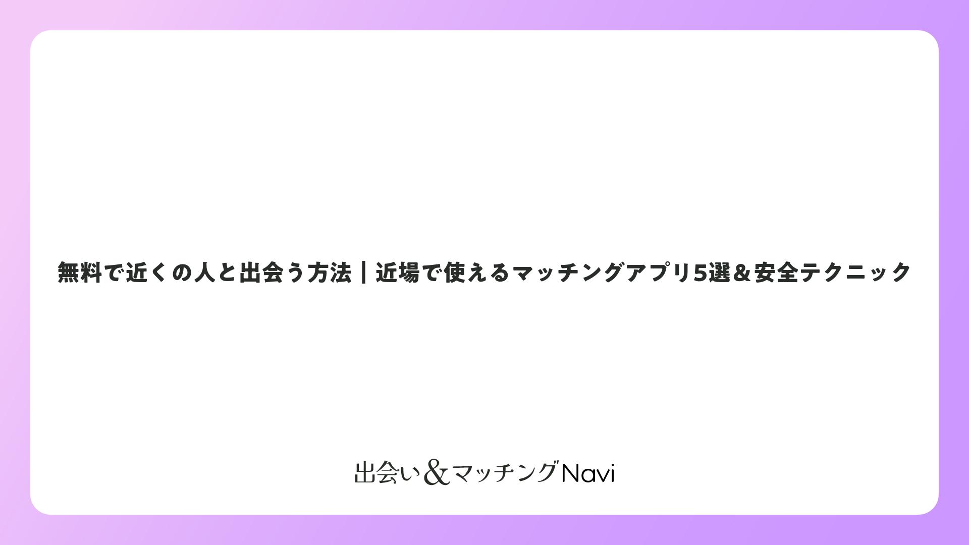 無料で近くの人と出会う方法|近場で使えるマッチングアプリ5選&安全テクニックをまとめました