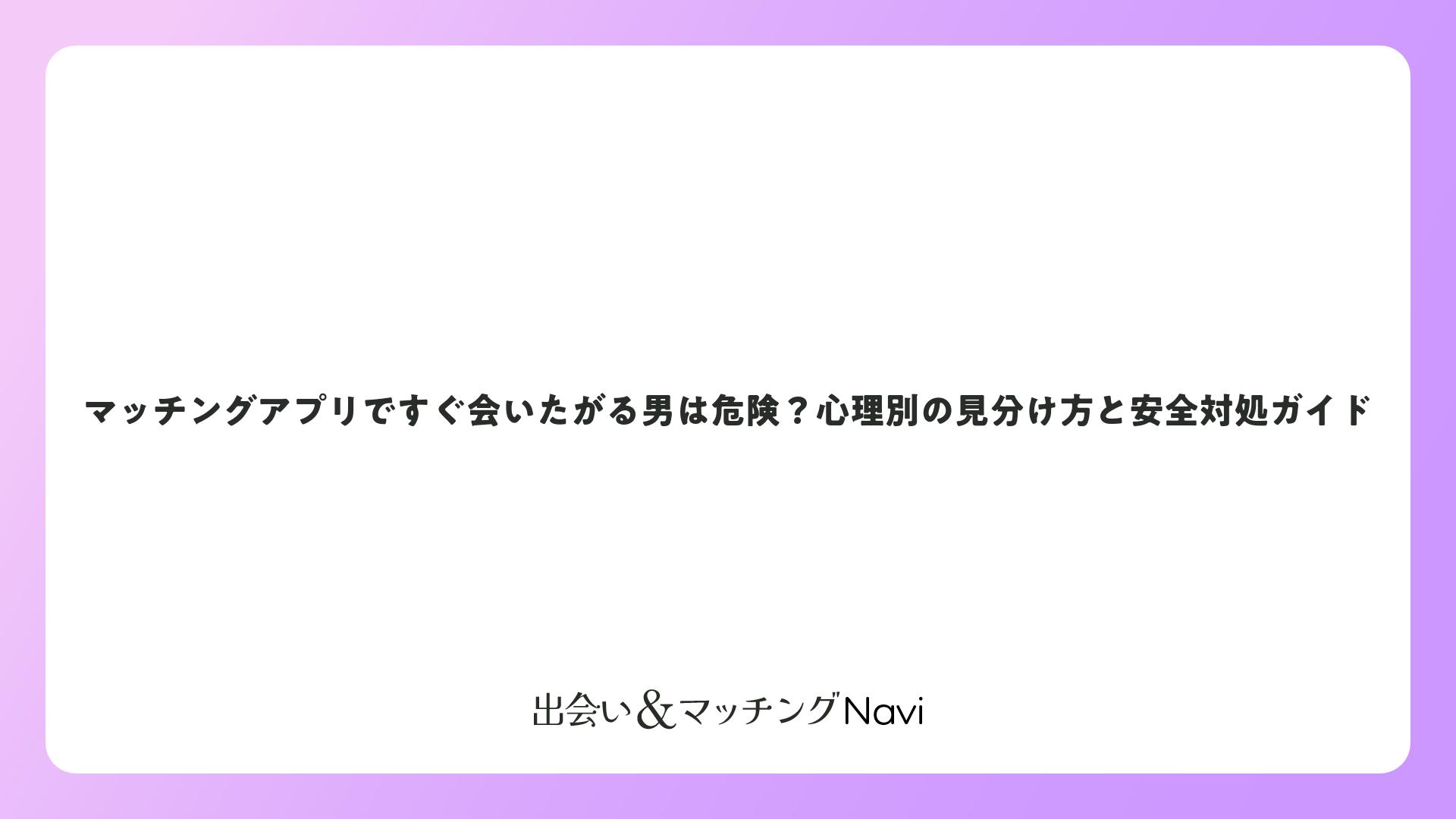 マッチングアプリですぐ会いたがる男は危険?心理別の見分け方と安全対処ガイド