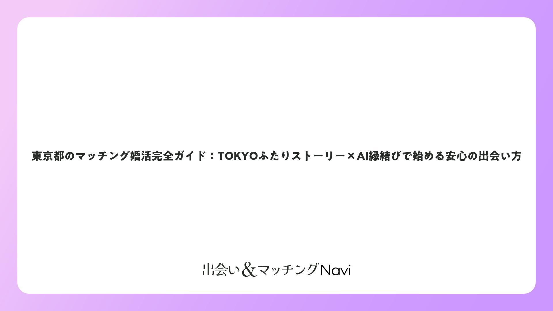 東京都のマッチング婚活完全ガイド:TOKYOふたりストーリー×AI縁結びで始める安心の出会い方をまとめました