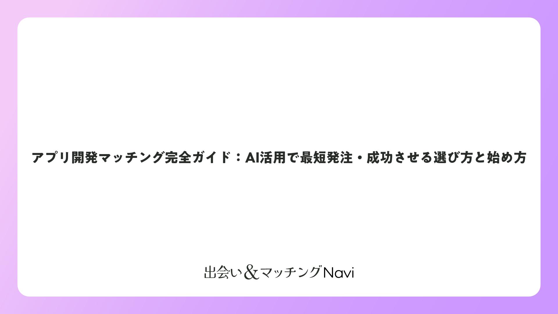 アプリ開発マッチング完全ガイド:AI活用で最短発注・成功させる選び方と始め方をまとめました