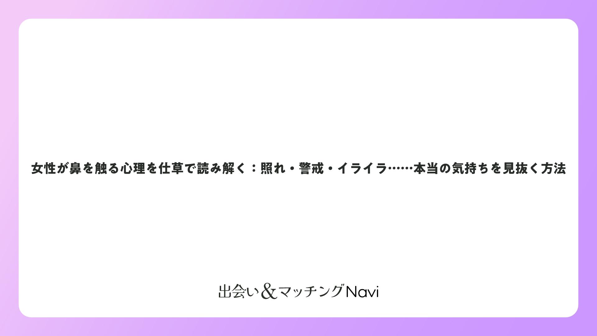 女性が鼻を触る心理を仕草で読み解く:照れ・警戒・イライラ……本当の気持ちを見抜く方法をまとめました
