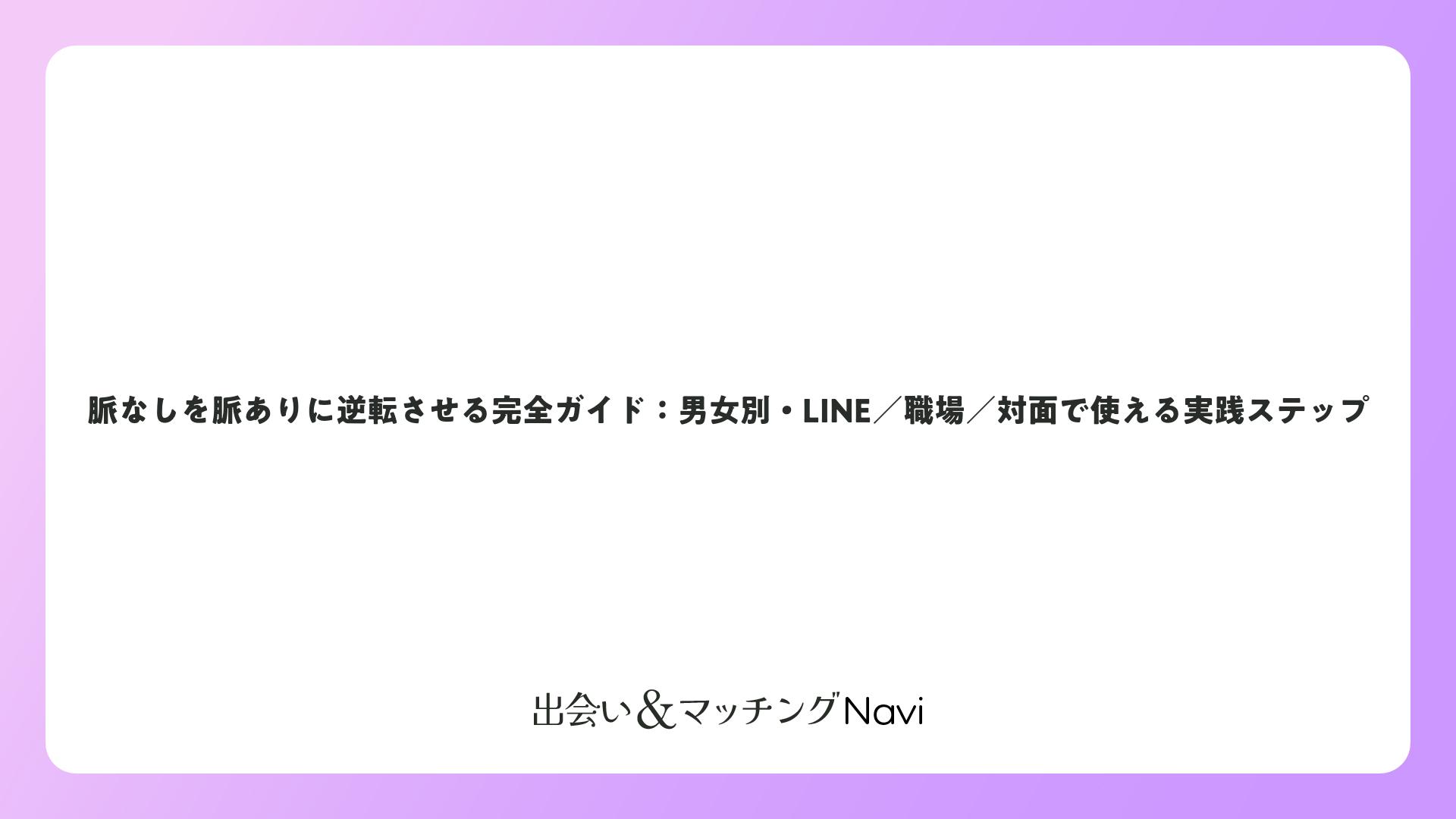 脈なしを脈ありに逆転させる完全ガイド:男女別・LINE/職場/対面で使える実践ステップをまとめました