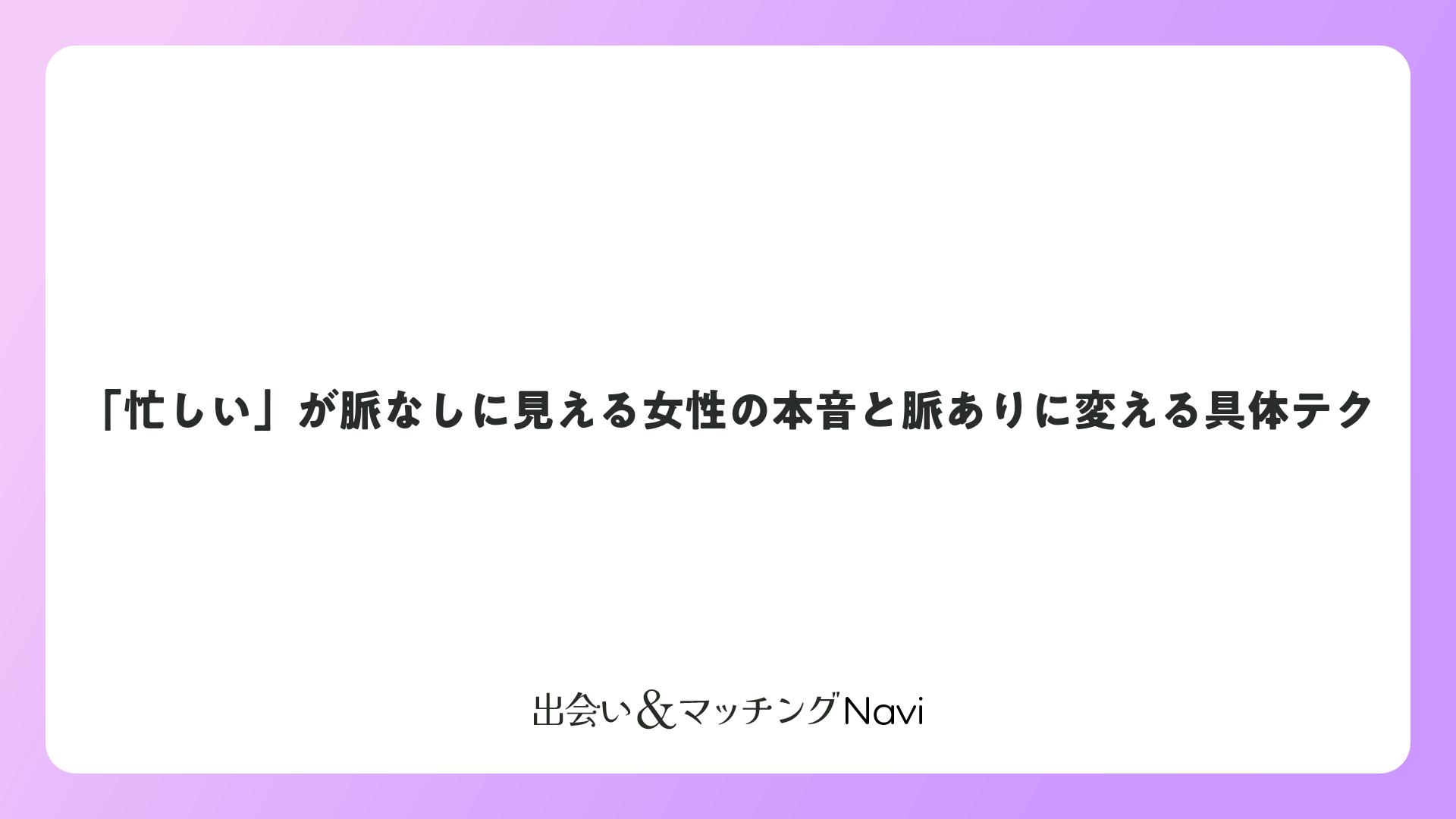 「忙しい」が脈なしに見える女性の本音と脈ありに変える具体テクをまとめました