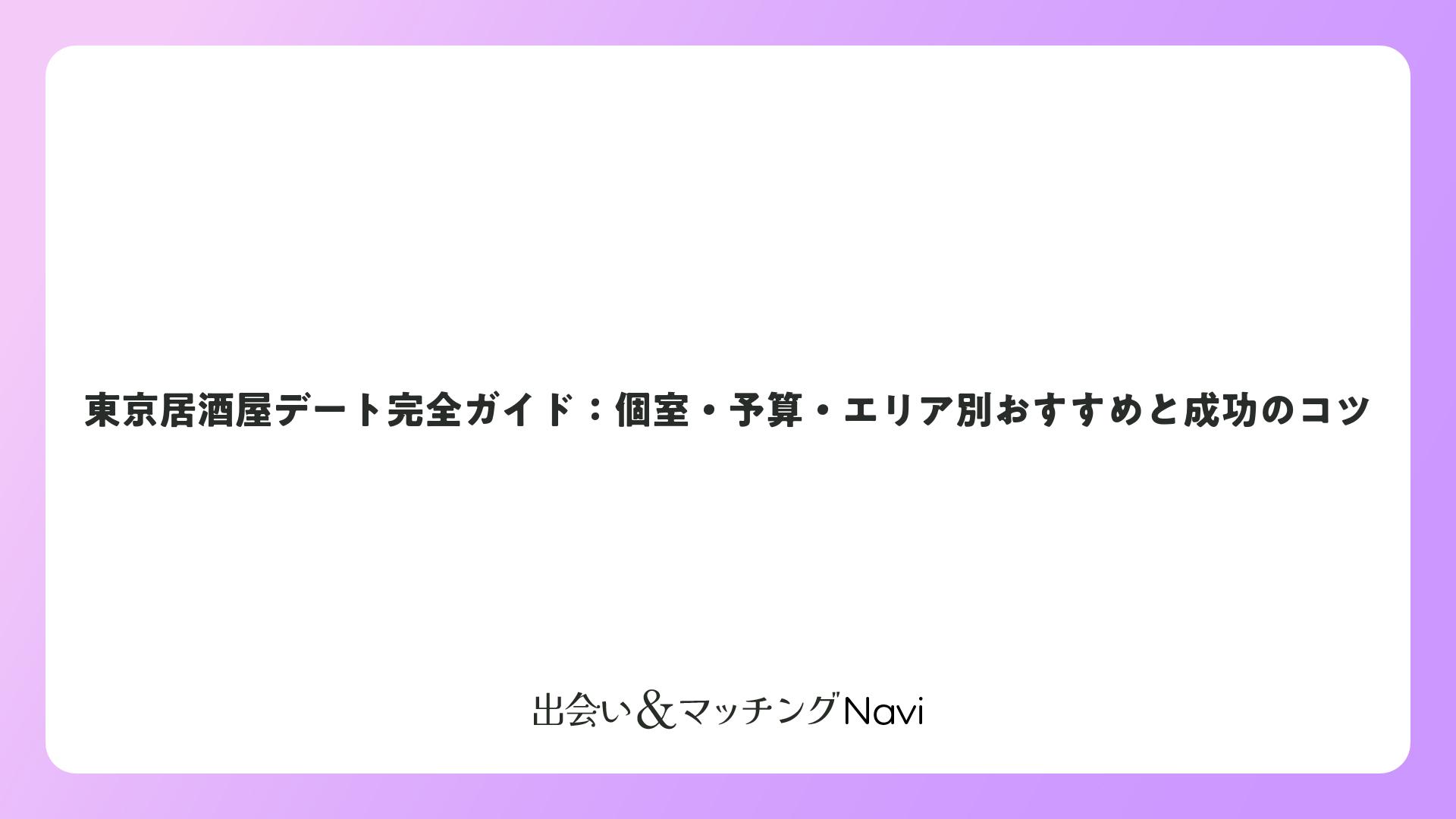 東京居酒屋デート完全ガイド:個室・予算・エリア別おすすめと成功のコツをまとめました