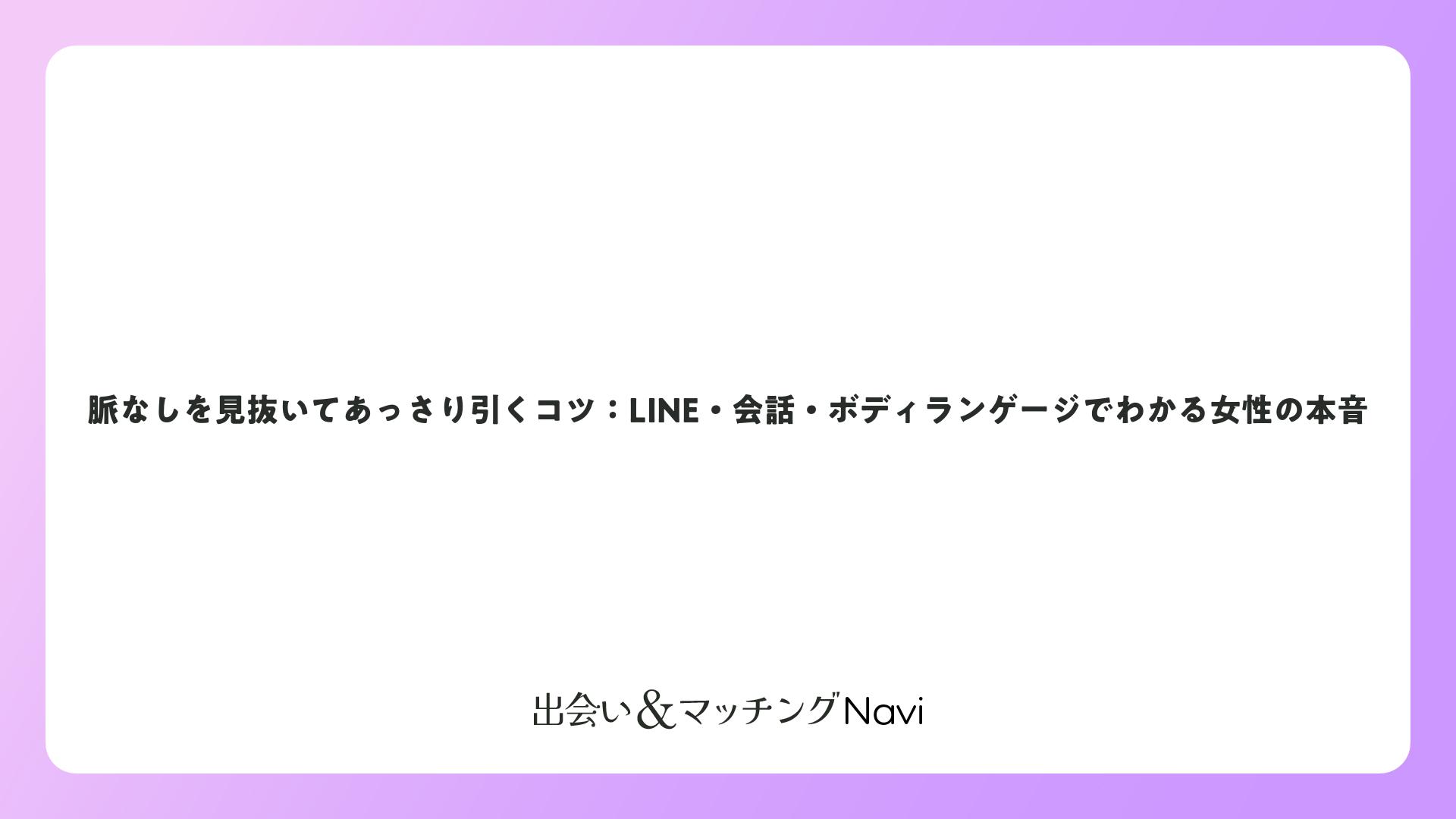 脈なしを見抜いてあっさり引くコツ:LINE・会話・ボディランゲージでわかる女性の本音をまとめました