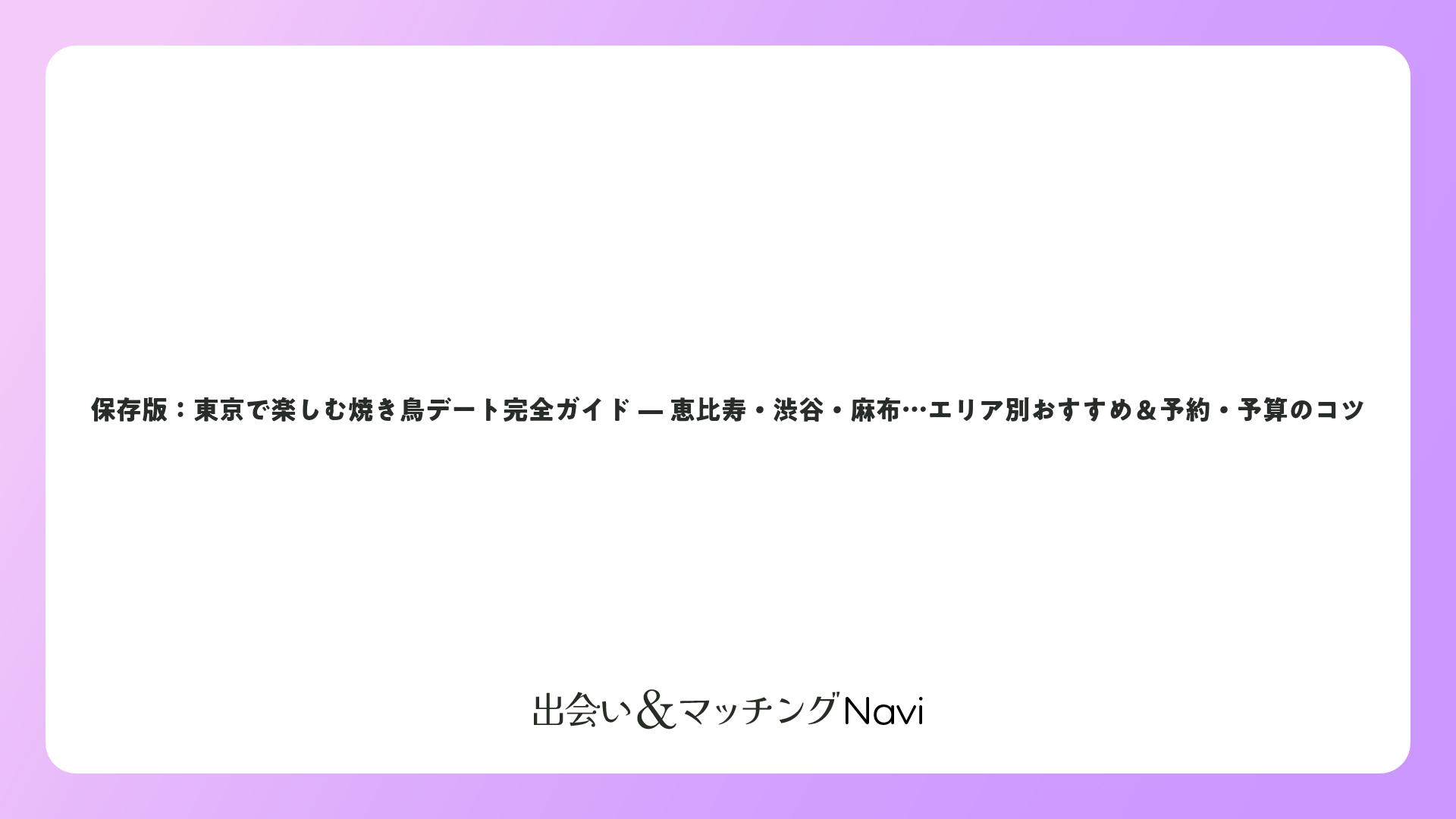 保存版:東京で楽しむ焼き鳥デート完全ガイド — 恵比寿・渋谷・麻布…エリア別おすすめ&予約・予算のコツをまとめました