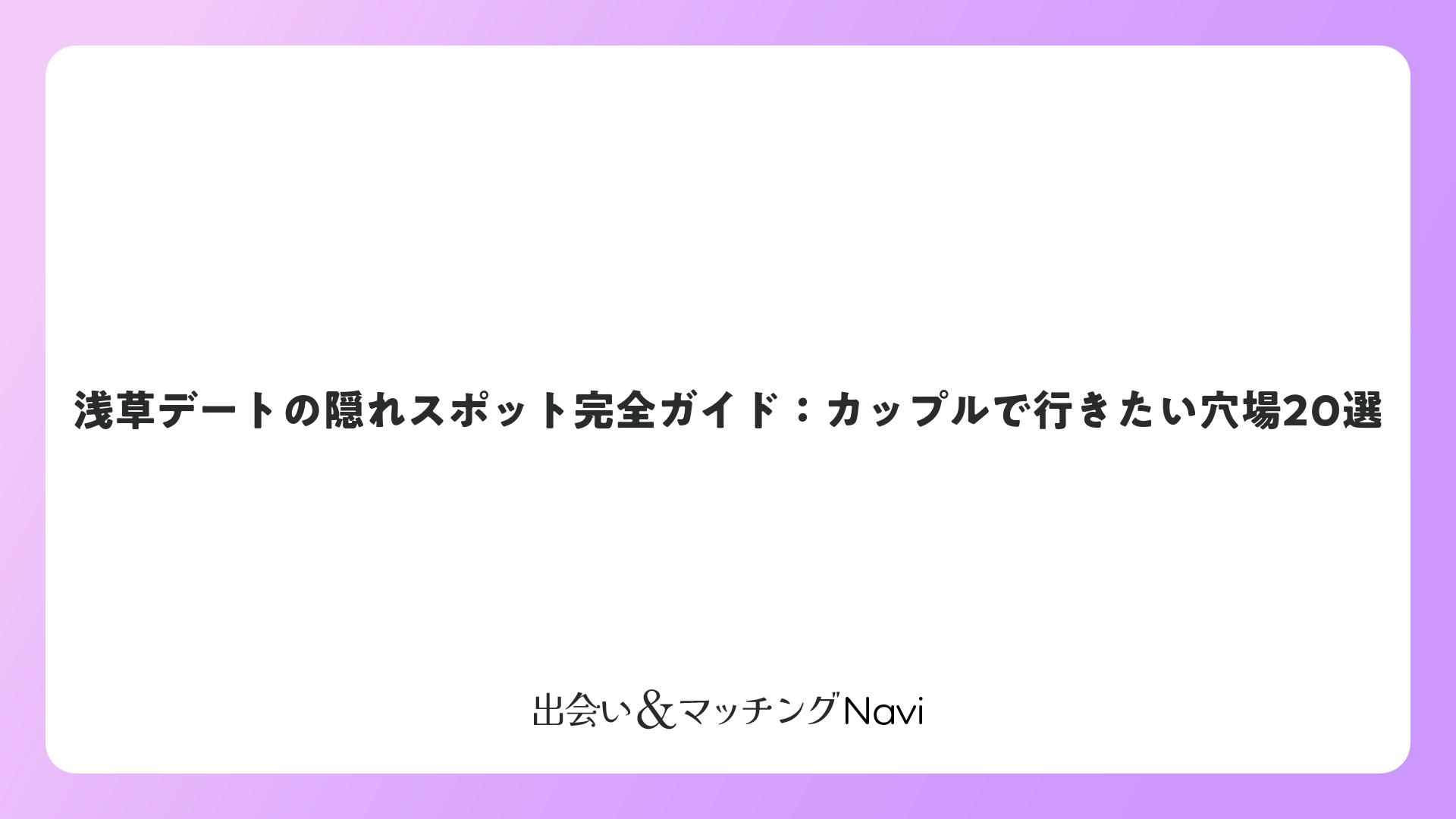 浅草といえば、雷門や仲見世通り、浅草寺といった定番スポットが思い浮かぶ方が多いでしょう。しかし、この歴史ある下町には、観光客の目が届きにくい隠れた魅力的なデートスポットが数多く存在しています。付き合う前のデートから、付き合った後のまったりとしたデートまで、様々なシーンで活躍する穴場スポットを厳選してご紹介します。浅草でのデートをより特別で思い出深いものにするために、ぜひこの記事を参考にしてみてください。