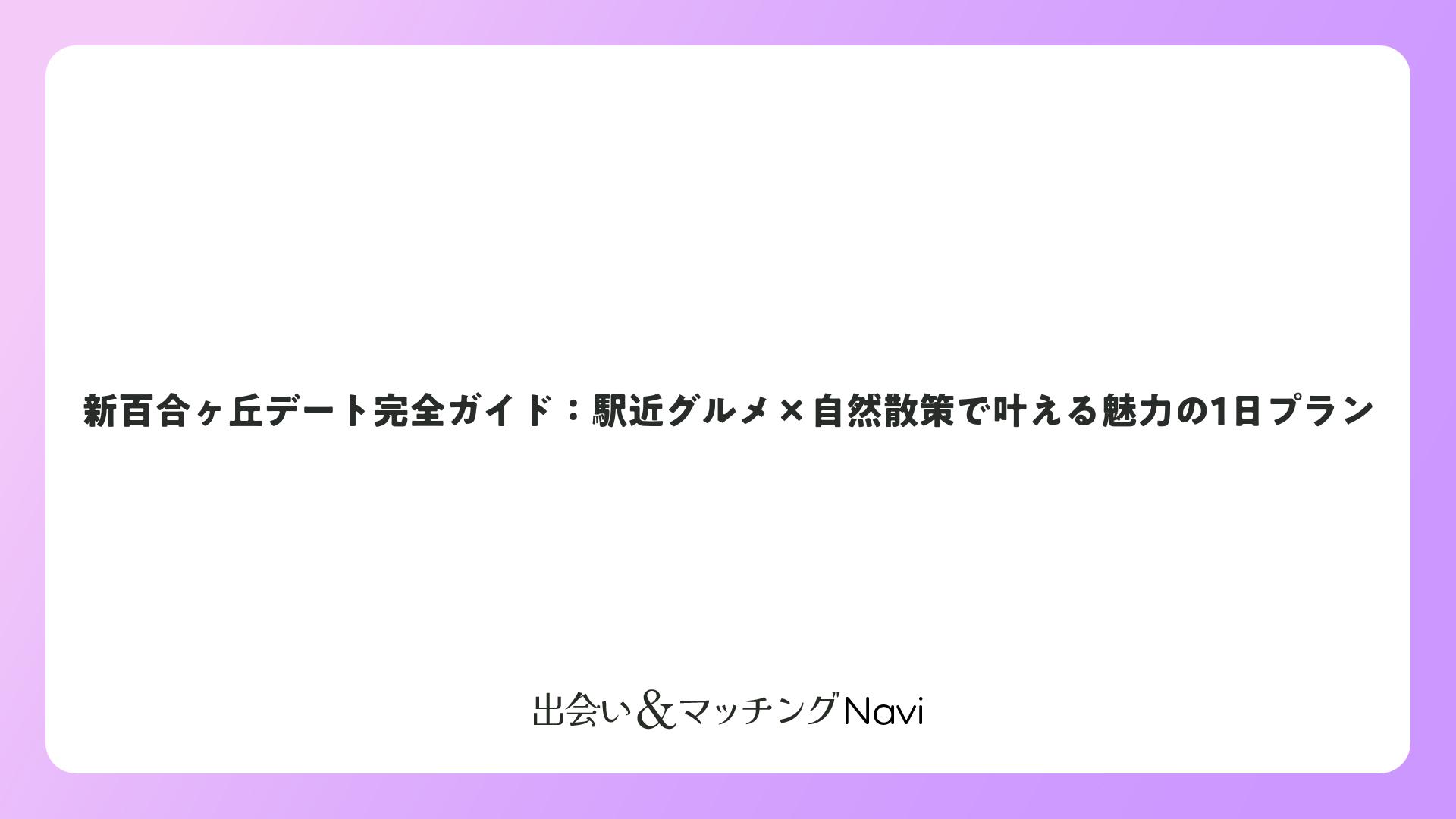 新百合ヶ丘は、小田急線沿線の人気エリアで、駅前にはショッピング施設が充実し、少し足を伸ばせば豊かな自然が広がる理想的なデートスポットです。便利なアクセスと多様なグルメ、季節の花々が楽しめるこの街で、素敵な時間を過ごしましょう。