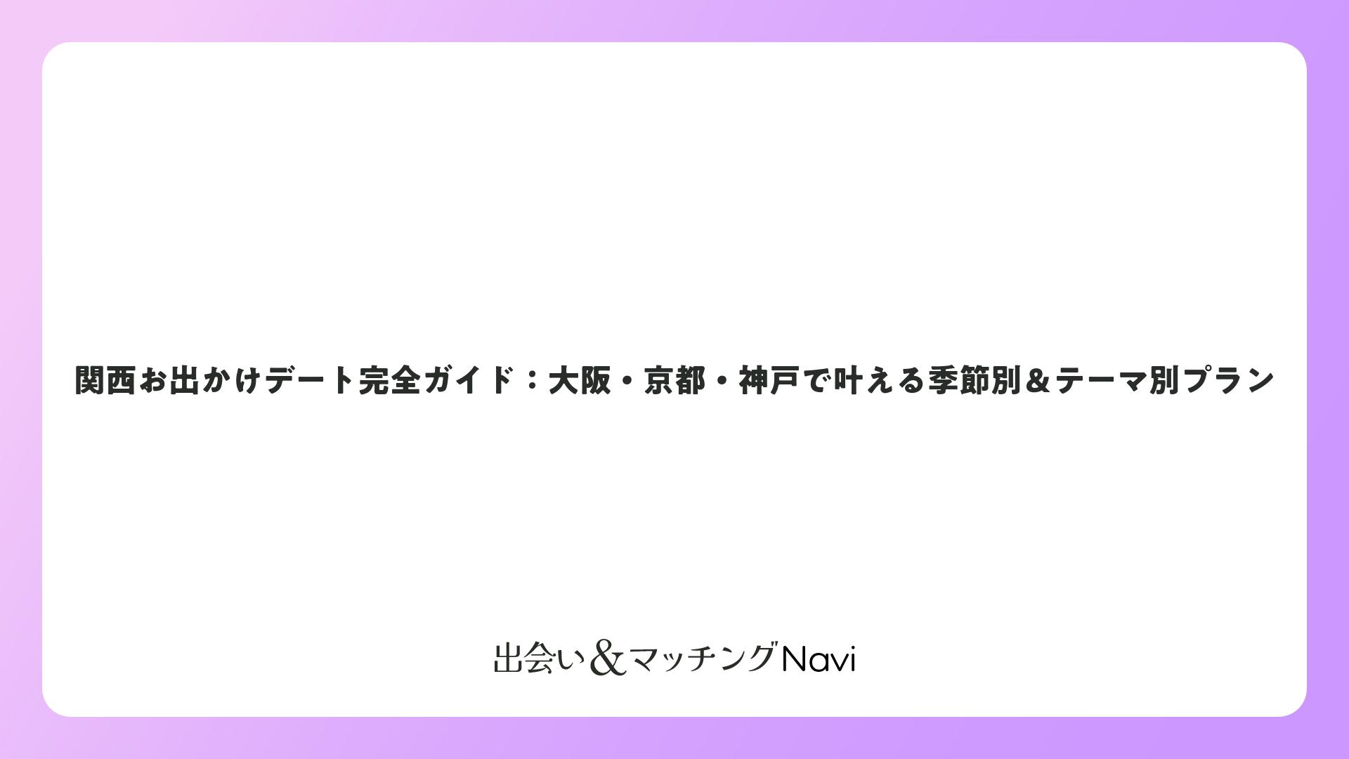 大阪の賑わい、神戸の洗練、京都の風情を満喫すれば、関係がより深まること間違いなし。最新イベントもチェックし、ポジティブなエネルギーで素敵な一日を。きっと忘れられないデートになりますよ。