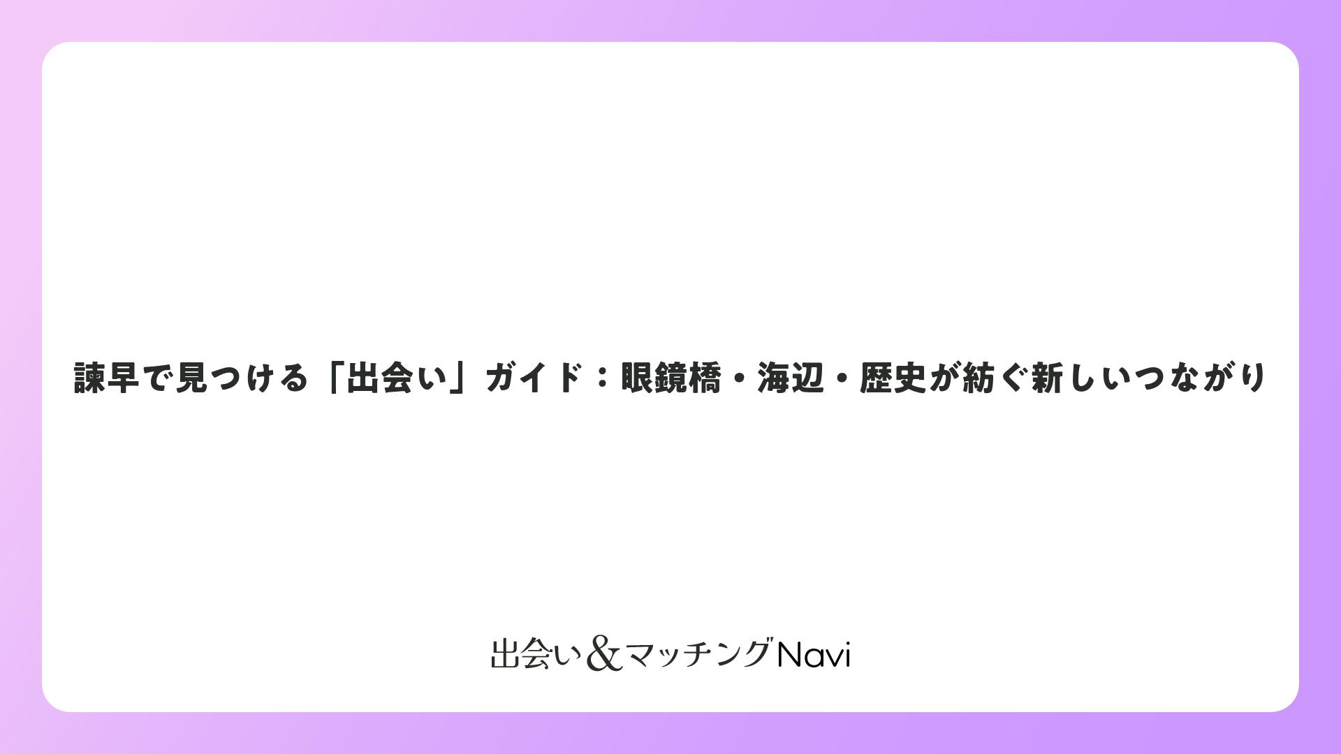豊かな歴史と美しい景観が織りなす諫早で、眼鏡橋の下で出会う笑顔、西郷氏の城跡で語らう歴史愛好家、海辺で共有するサンセット。こうした瞬間が、諫早出会いの醍醐味です。訪れてみて、温かな人柄に触れ、きっとファンになるでしょう。諫早が、あなたの人生に新しい彩りを加えます。
