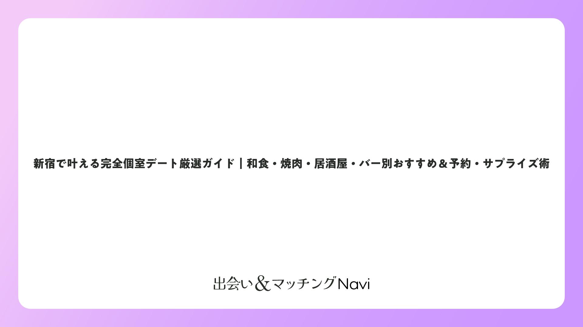新宿で叶える完全個室デート厳選ガイド|和食・焼肉・居酒屋・バー別おすすめ&予約・サプライズ術をまとめました