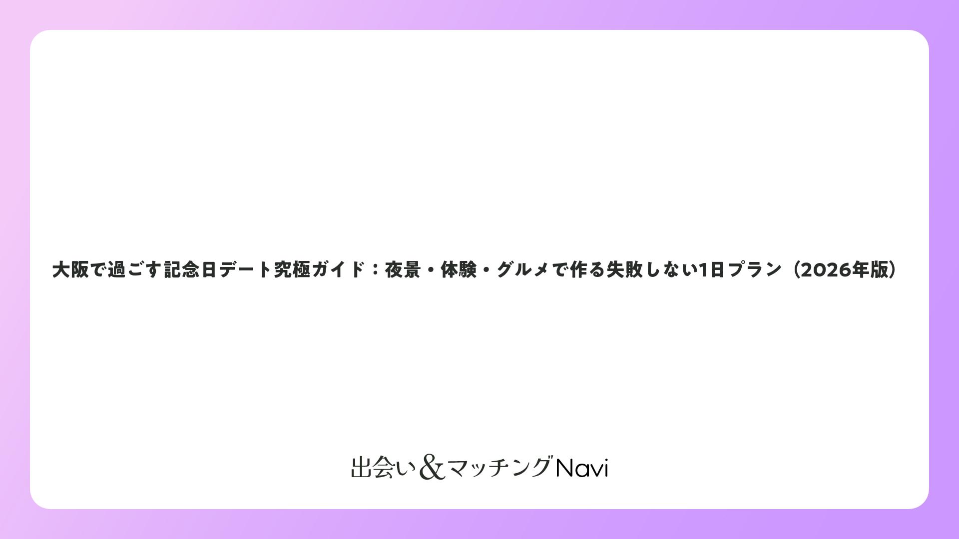 梅田の絶景から道頓堀の賑わい、大阪城の風情まで、エリアを選んで自分たちらしいプランを。2026年のイベントも味方につけ、ポジティブな思い出を積み重ねましょう。