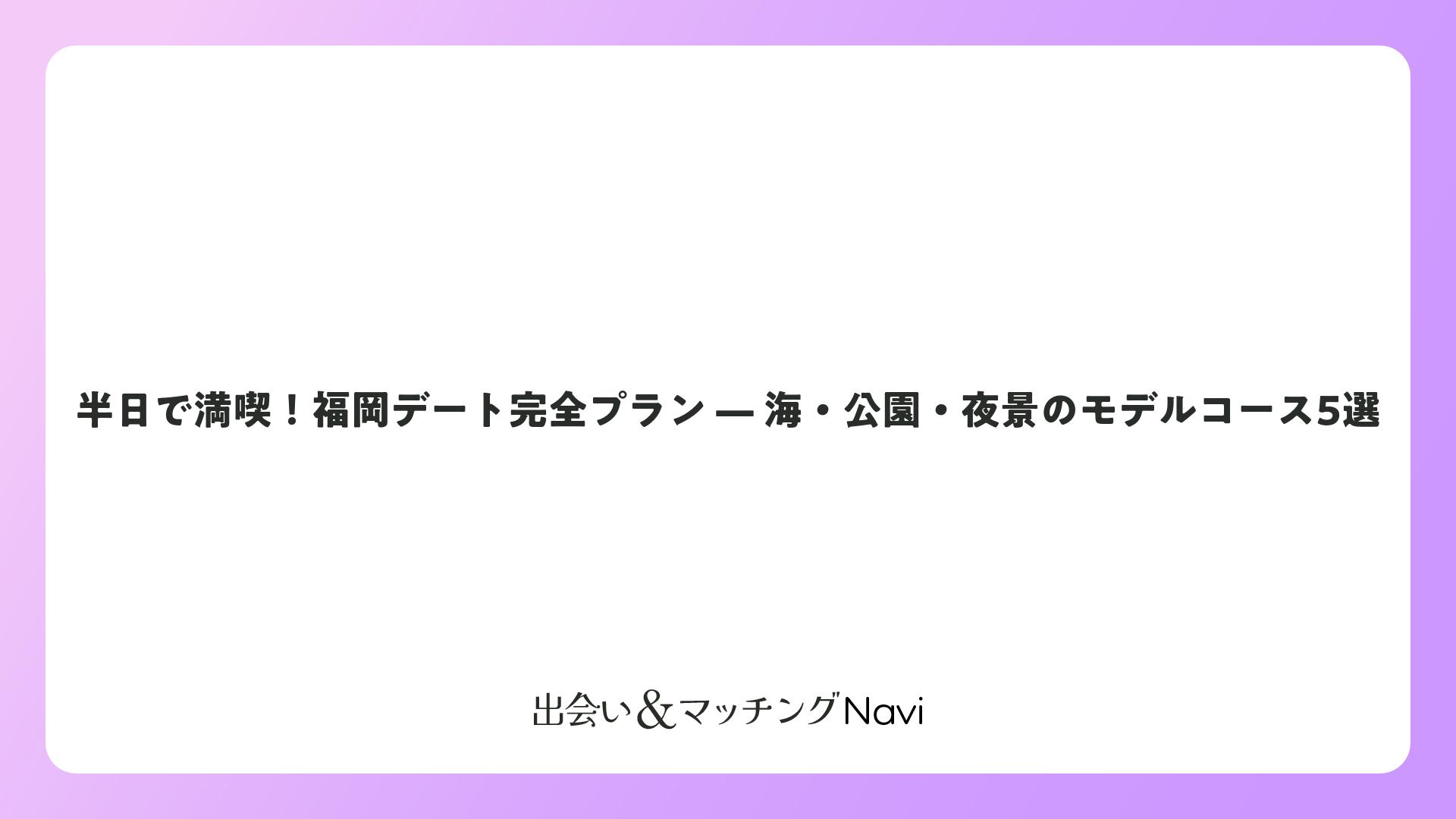 福岡の半日デートは、アクセス良し・バラエティ豊かで、どんなカップルも楽しめます。自然、グルメ、景色を織り交ぜ、思い出に残る1日を。