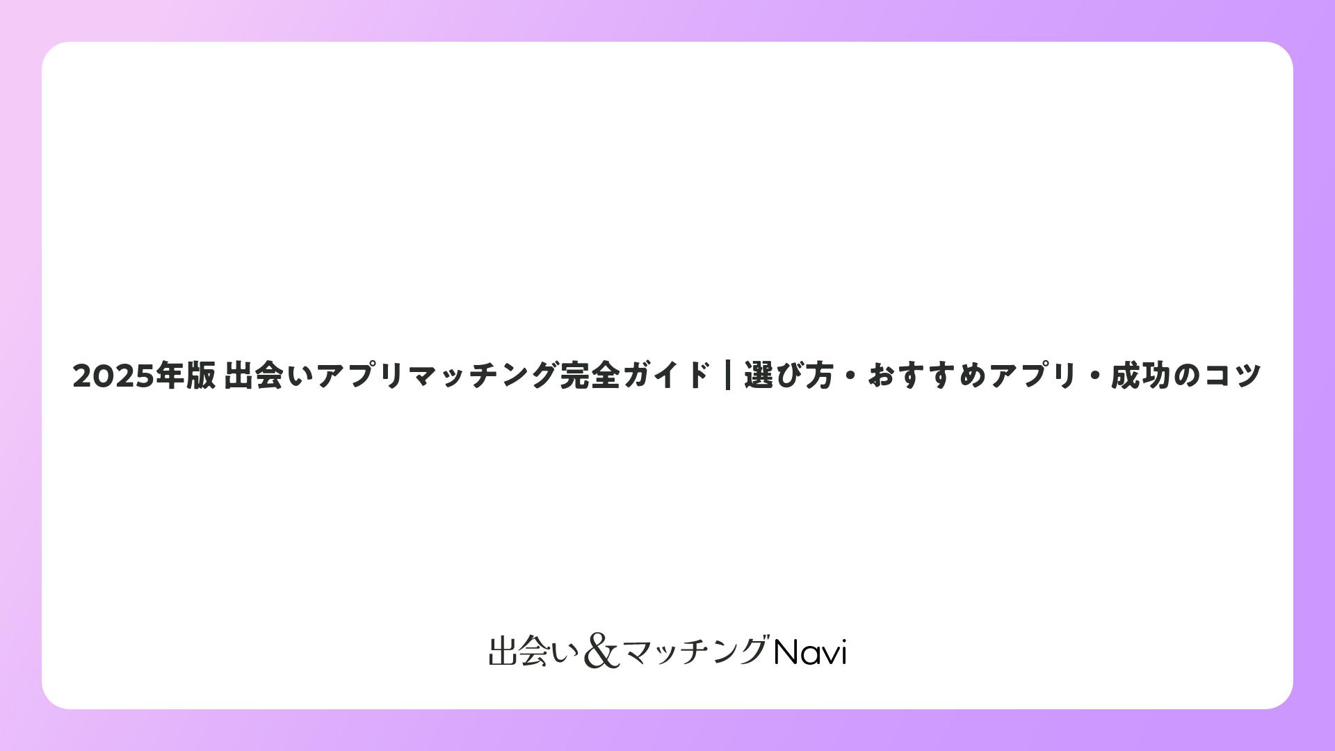 2025年版 出会いアプリマッチング完全ガイド|選び方・おすすめアプリ・成功のコツをまとめました