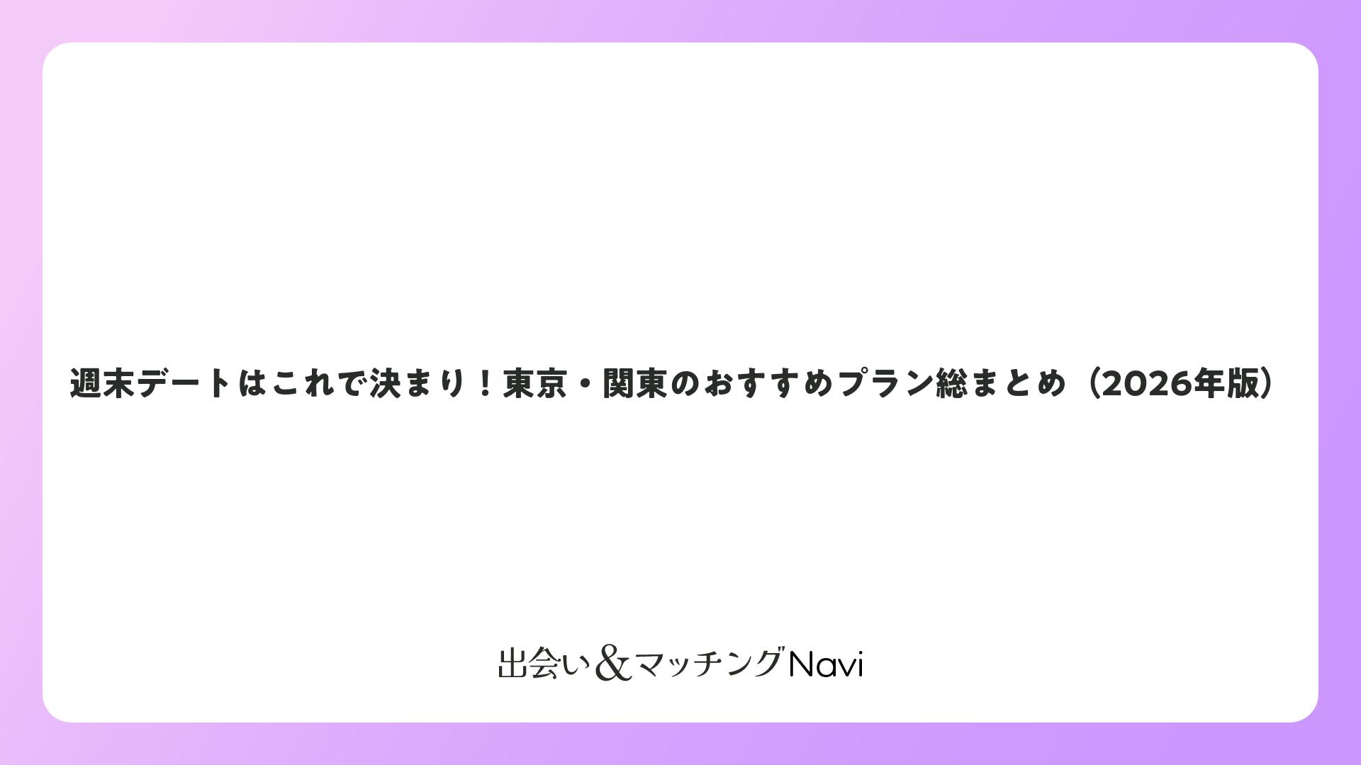 週末デートは日常を離れ、お互いを再発見するチャンス。東京・関東の多彩なスポットとイベントを活用し、笑顔いっぱいの時間を過ごしましょう。トレンドを押さえ、柔軟なプランで最高の思い出を。