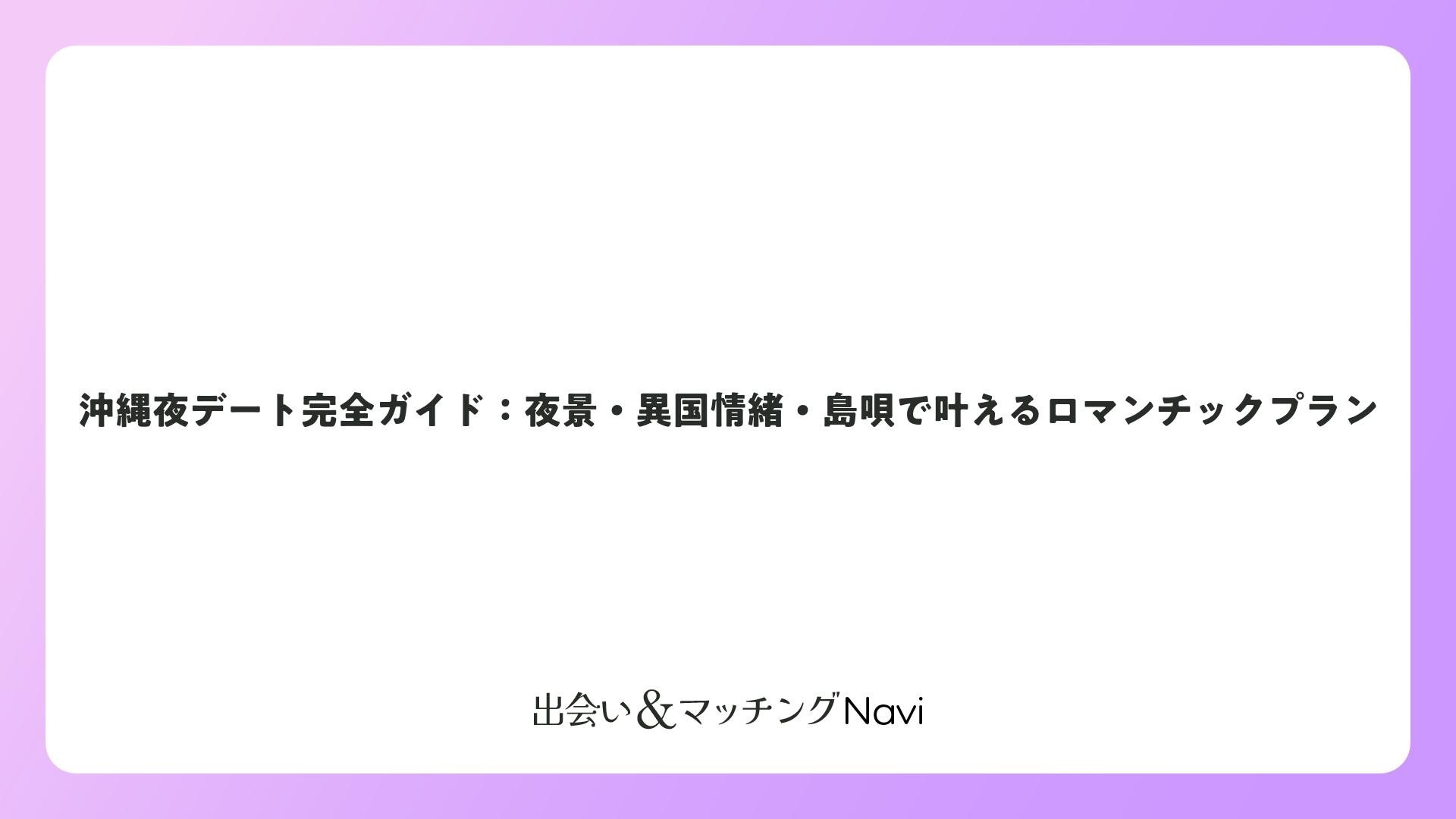 沖縄での夜デートは、独特の魅力に満ちています。美しい夜景、異国情緒あふれる雰囲気、沖縄ならではの文化、そして温かい人々との出会いなど、多くの要素がカップルの思い出を作ります。