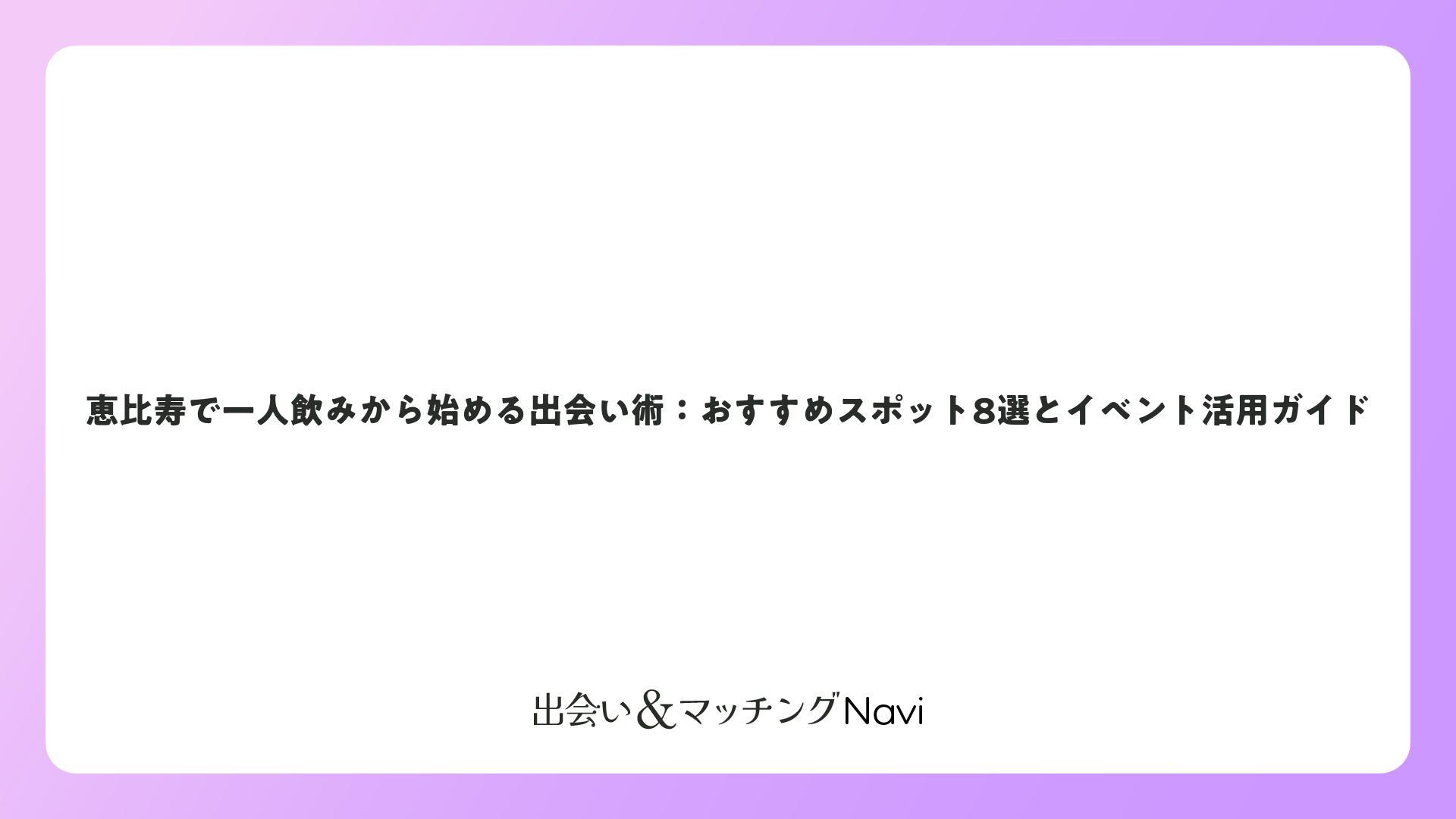 恵比寿で一人飲みから始める出会い術:おすすめスポット8選とイベント活用ガイドをまとめました