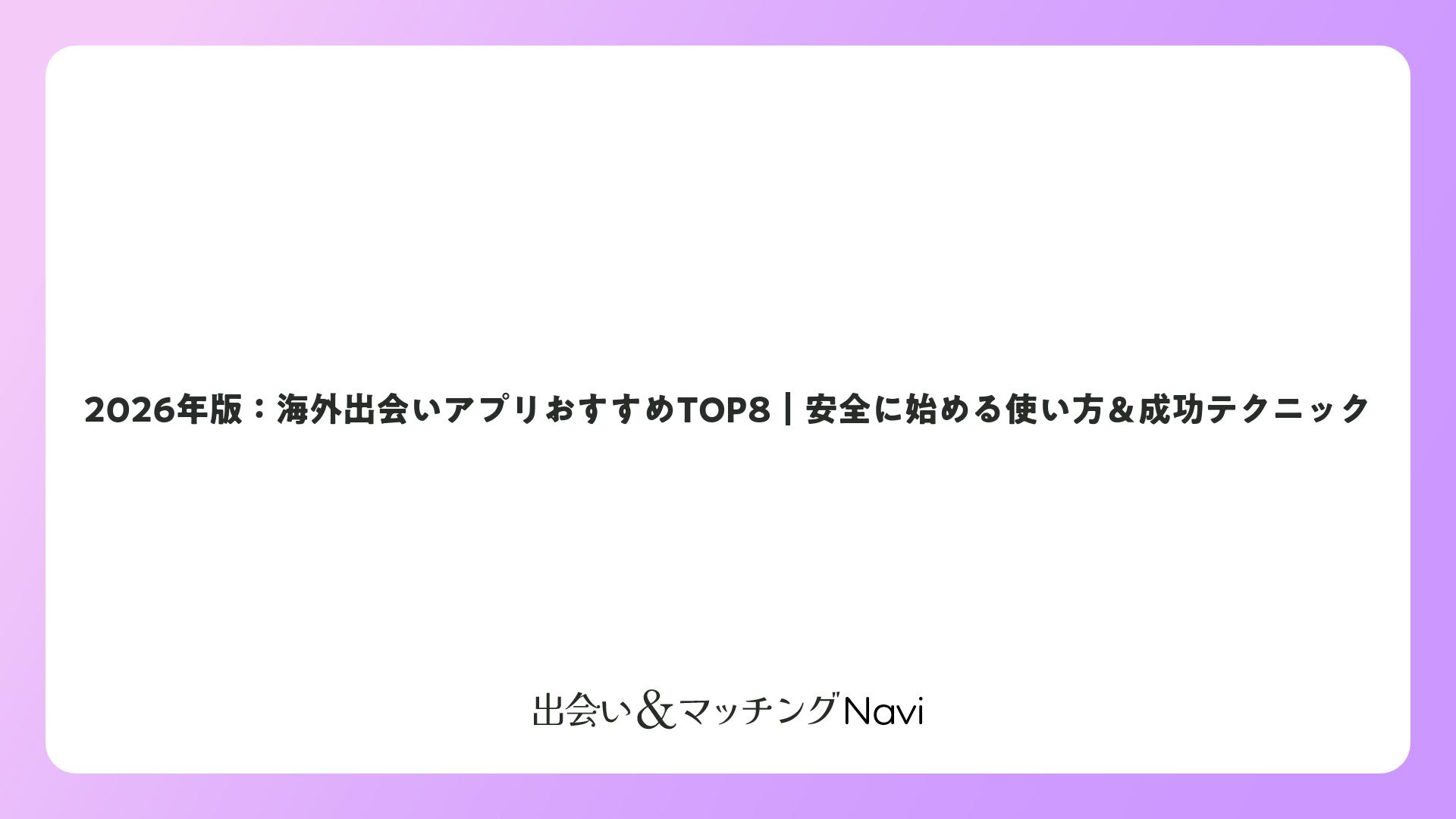 2026年版:海外出会いアプリおすすめTOP8|安全に始める使い方&成功テクニックをまとめました