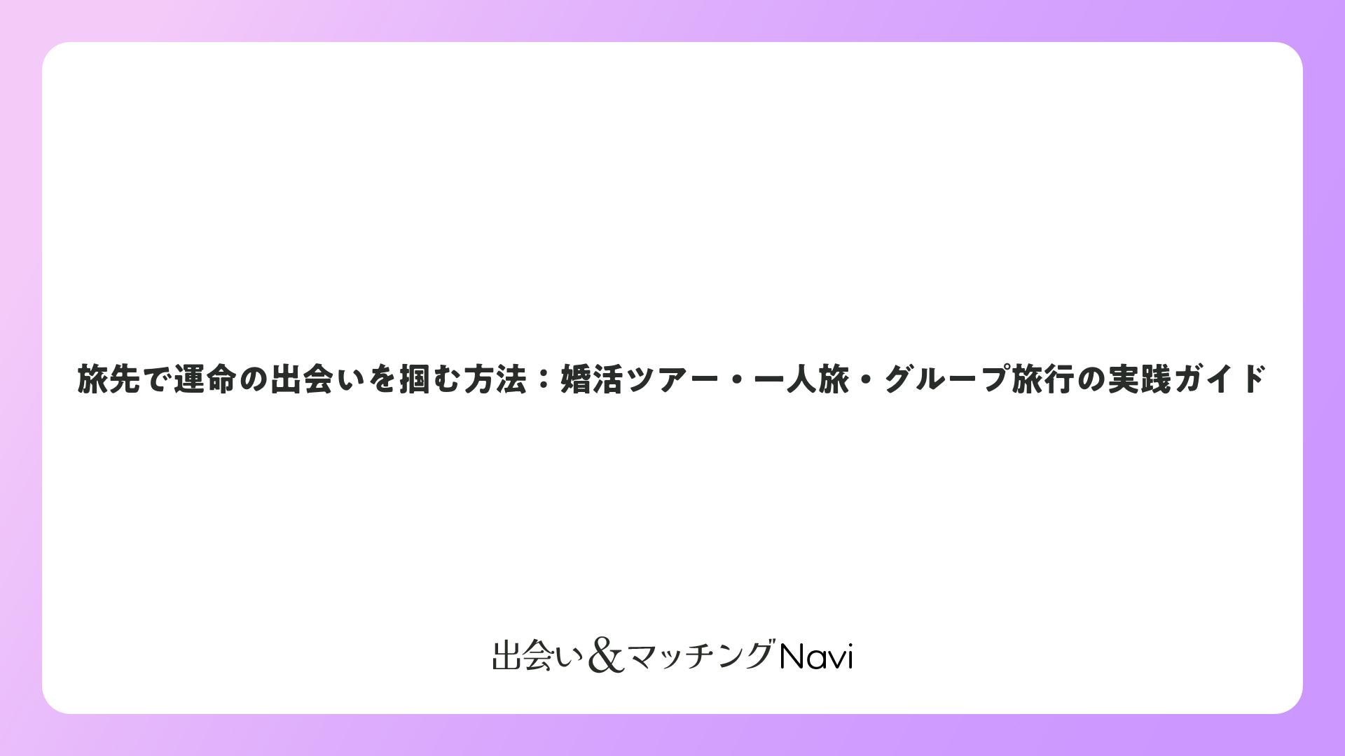 旅先で運命の出会いを掴む方法:婚活ツアー・一人旅・グループ旅行の実践ガイドをまとめました