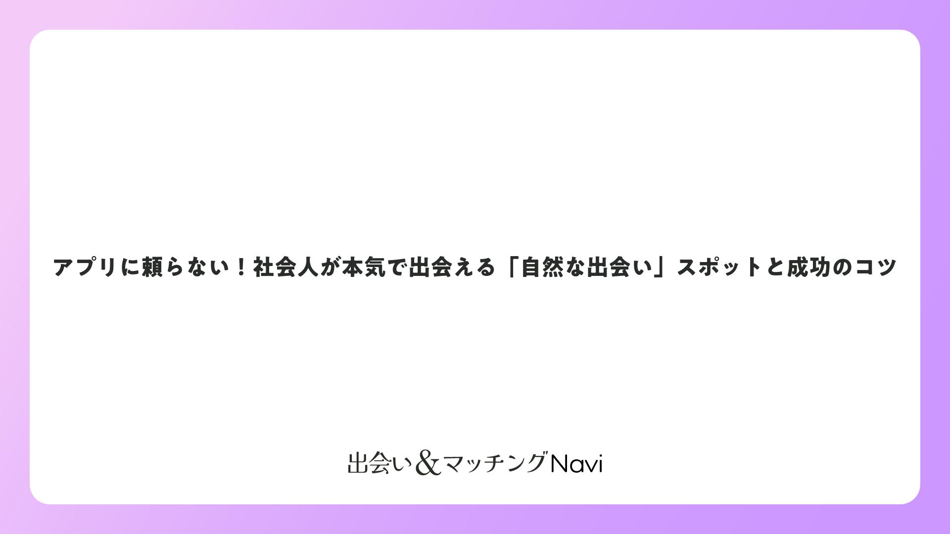 アプリに頼らない!社会人が本気で出会える「自然な出会い」スポットと成功のコツをまとめました