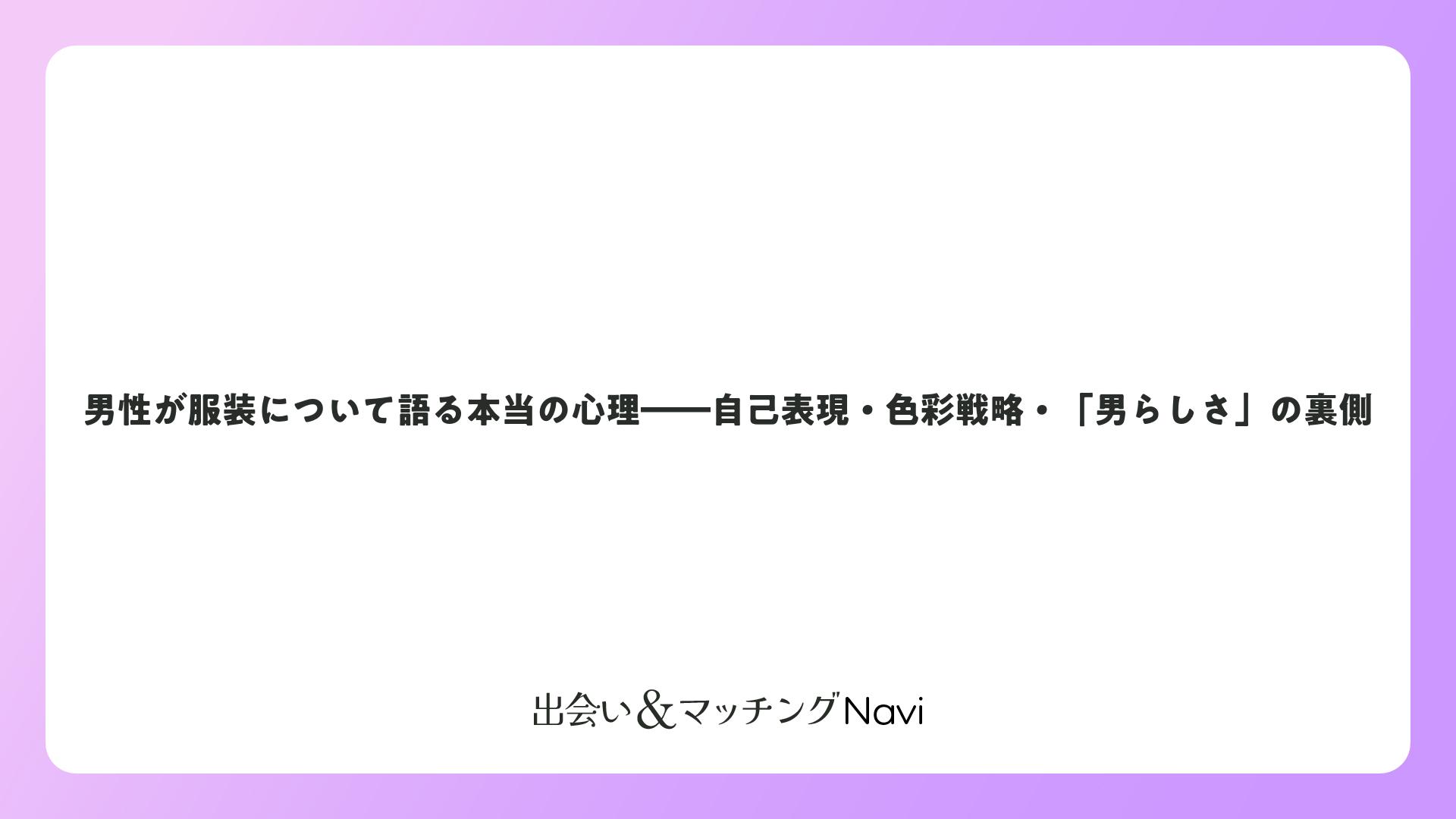 男性が服装について語る本当の心理――自己表現・色彩戦略・「男らしさ」の裏側をまとめました