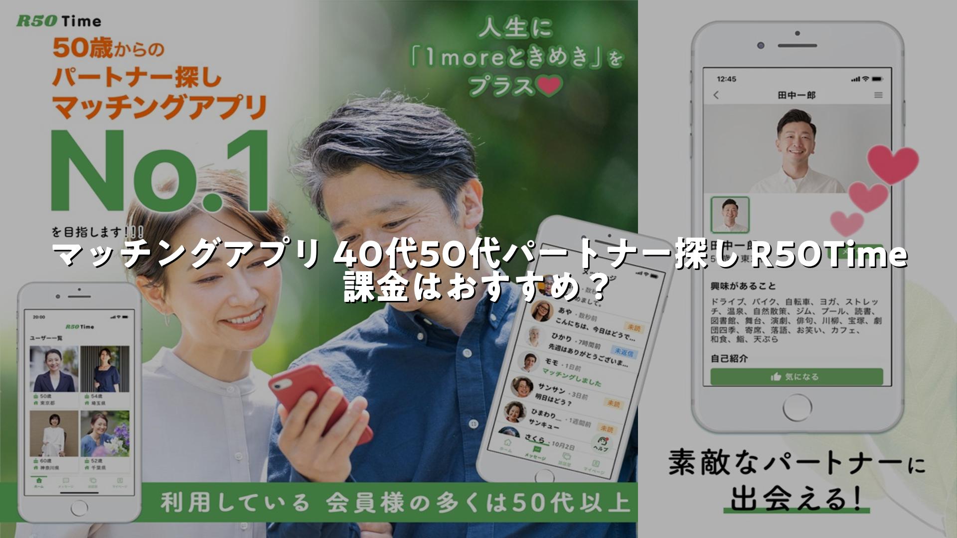 マッチングアプリ 40代50代パートナー探し R50Time 課金はおすすめ?アプリを調査