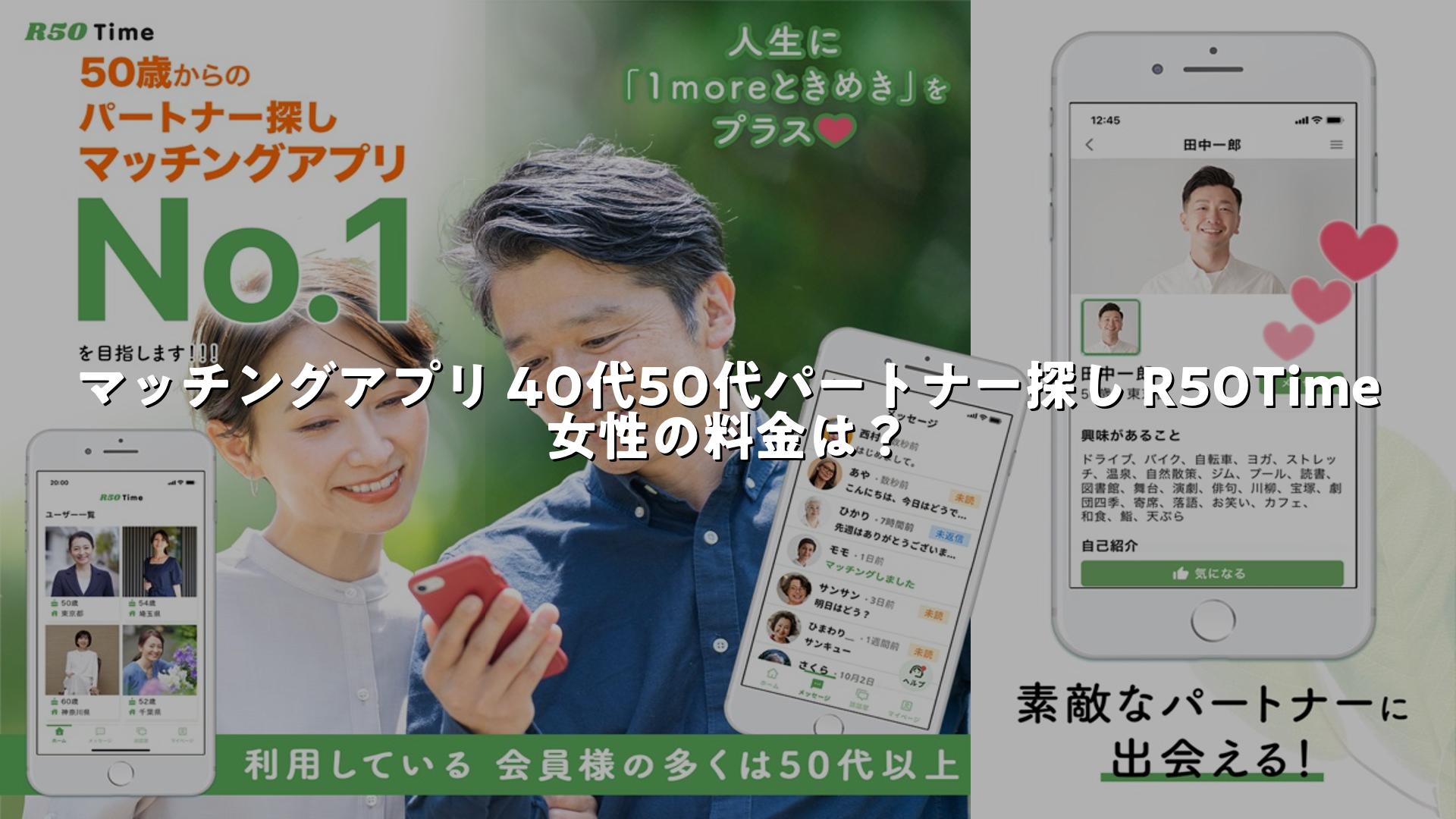 マッチングアプリ 40代50代パートナー探し R50Timeの口コミ・女性の料金は?ついてまとめました