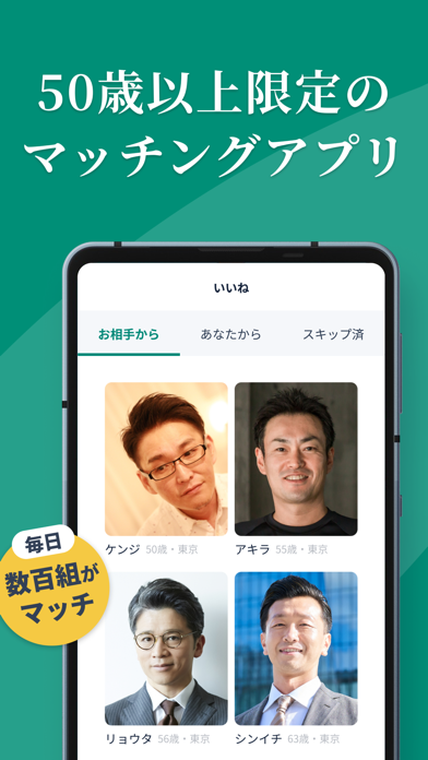 50代60代に特化していますので、同世代と知り合いたいと思っていた自分にとってはうってつけのアプリでした。