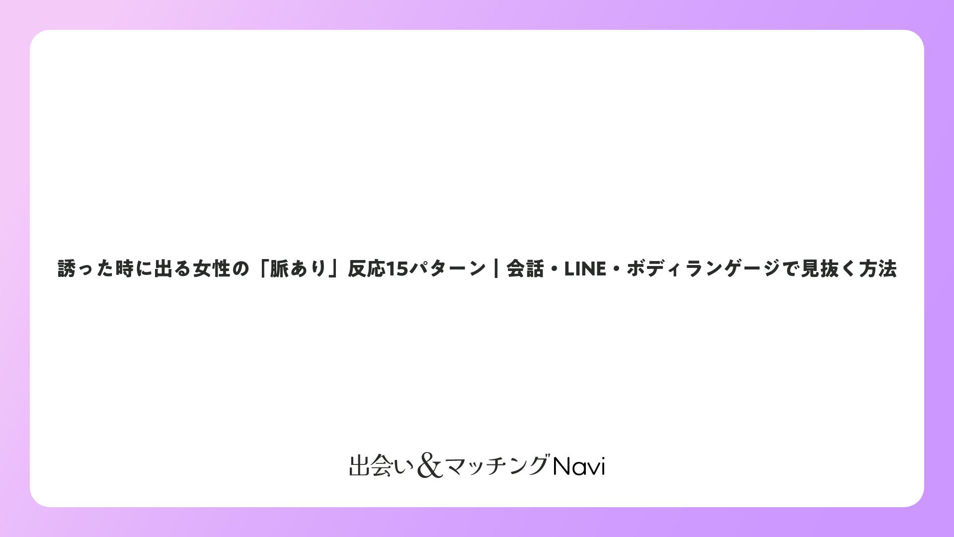 脈あり女性とは、あなたに対して好意を抱き、関係を深めたいと思っている女性のことです。特に誘った時の反応は本音が表れやすく、笑顔や積極的な返事、ボディタッチなどがその証拠となります。女性はストレートに気持ちを伝えにくいため、こうした非言語的なサインでアピールします。誘う際は自然体で、相手の反応をよく観察することが成功の鍵です。