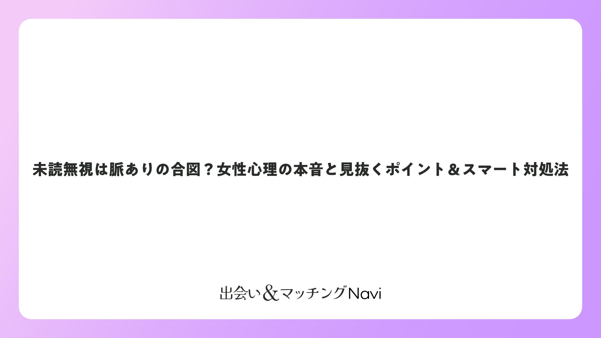 未読無視は脈ありの合図?女性心理の本音と見抜くポイント&スマート対処法をまとめました