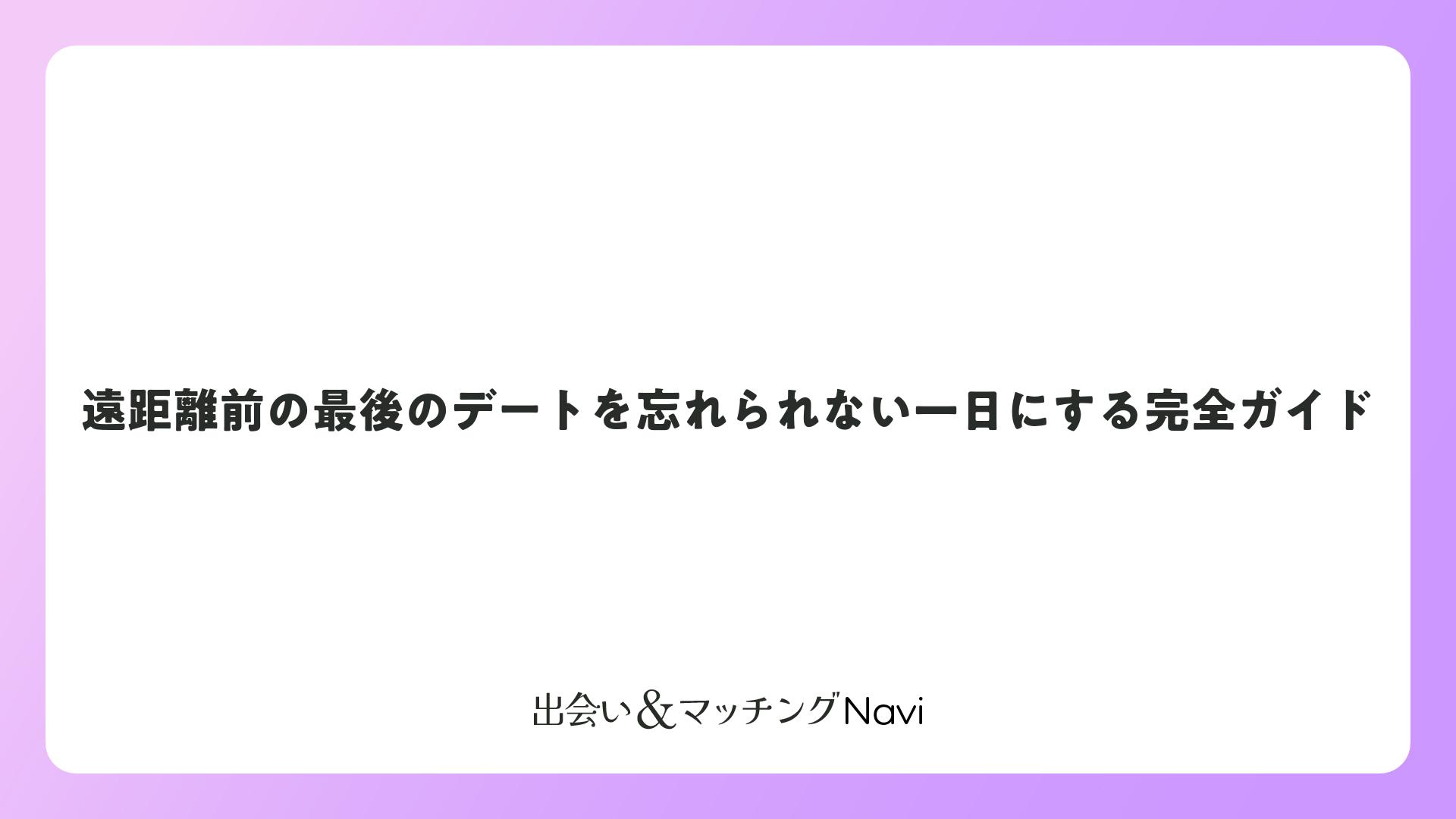 遠距離恋愛が始まる直前の最後のデートは、二人の関係をより強く結びつける特別な時間です。この記事では、そんな貴重な一日を最大限に楽しむためのアイデアや心構えを、ポジティブに紹介します。思い出に残る素敵な時間を過ごして、遠距離を前向きにスタートしましょう。