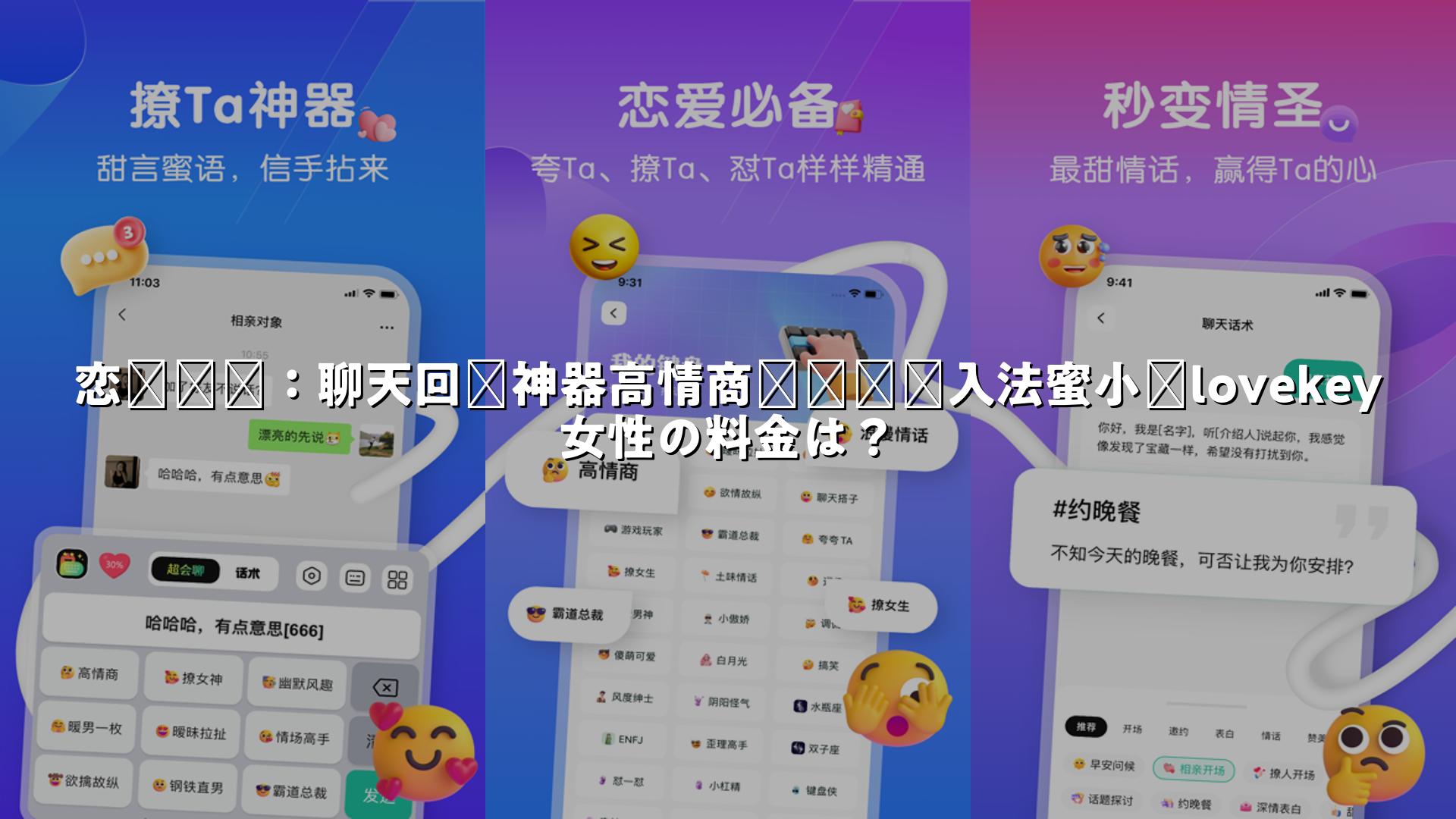恋爱键盘:聊天回复神器高情商对话术入力法蜜小语lovekeyの口コミ・女性の料金は?ついてまとめました