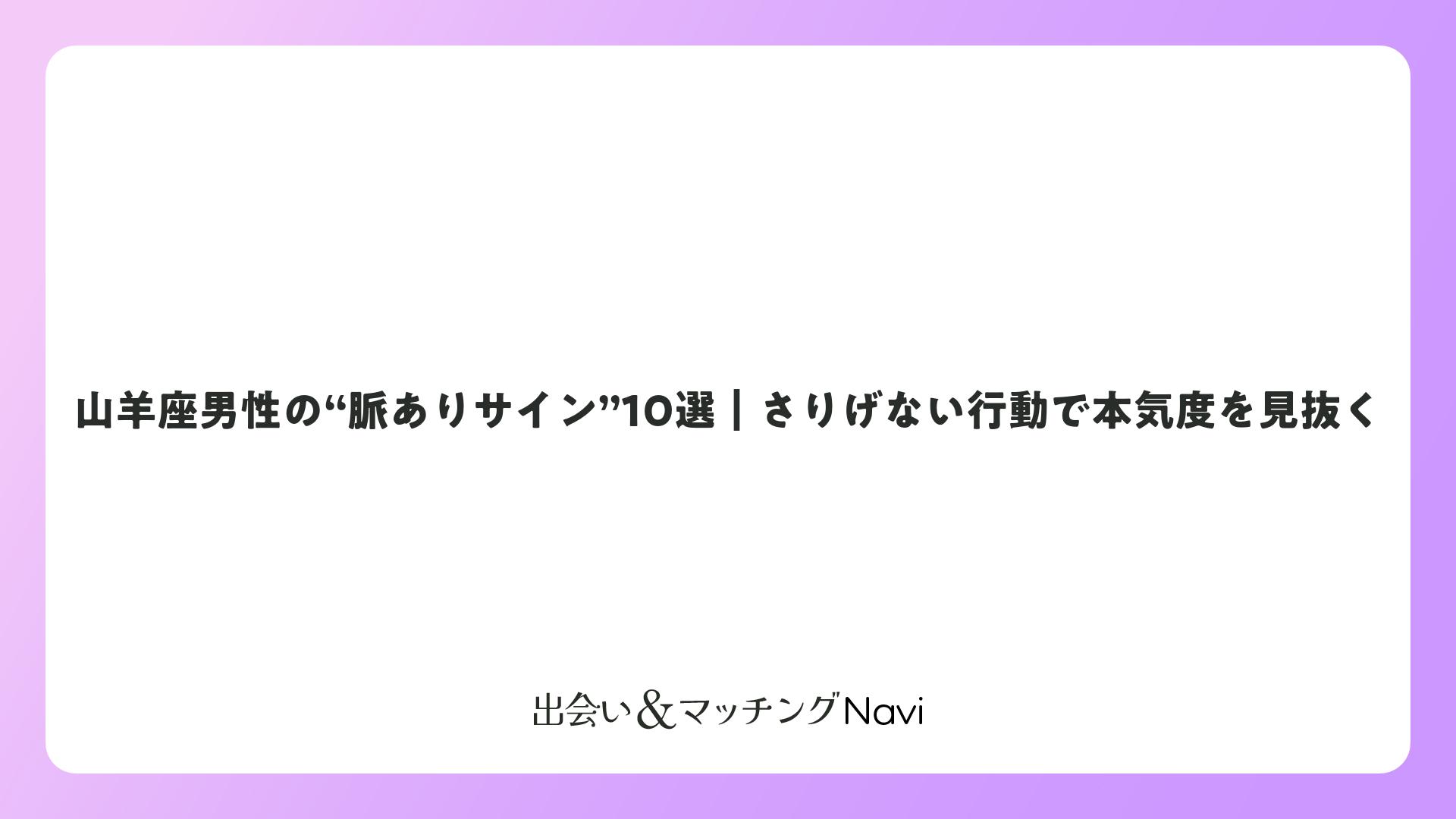 山羊座男性は、真面目で誠実な性格が魅力的な星座です。彼らが本気であなたに興味を持っているときに見せる脈ありサインは、派手さはありませんが、確かな優しさと信頼の表れに満ちています。この記事では、そんな山羊座男性の恋愛サインを詳しく解説します。日常のさりげない行動から、深い想いが感じられるポイントまで、複数の視点からお伝えしますので、あなたの気になる彼の行動を振り返ってみてください。