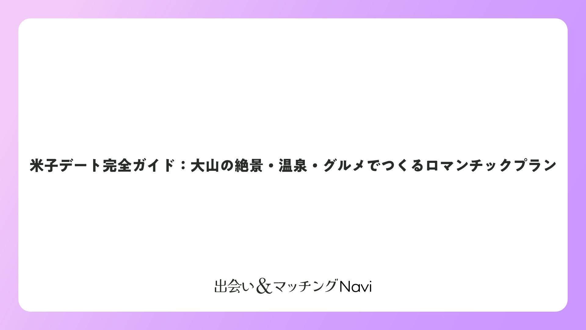 米子デート完全ガイド:大山の絶景・温泉・グルメでつくるロマンチックプランをまとめました