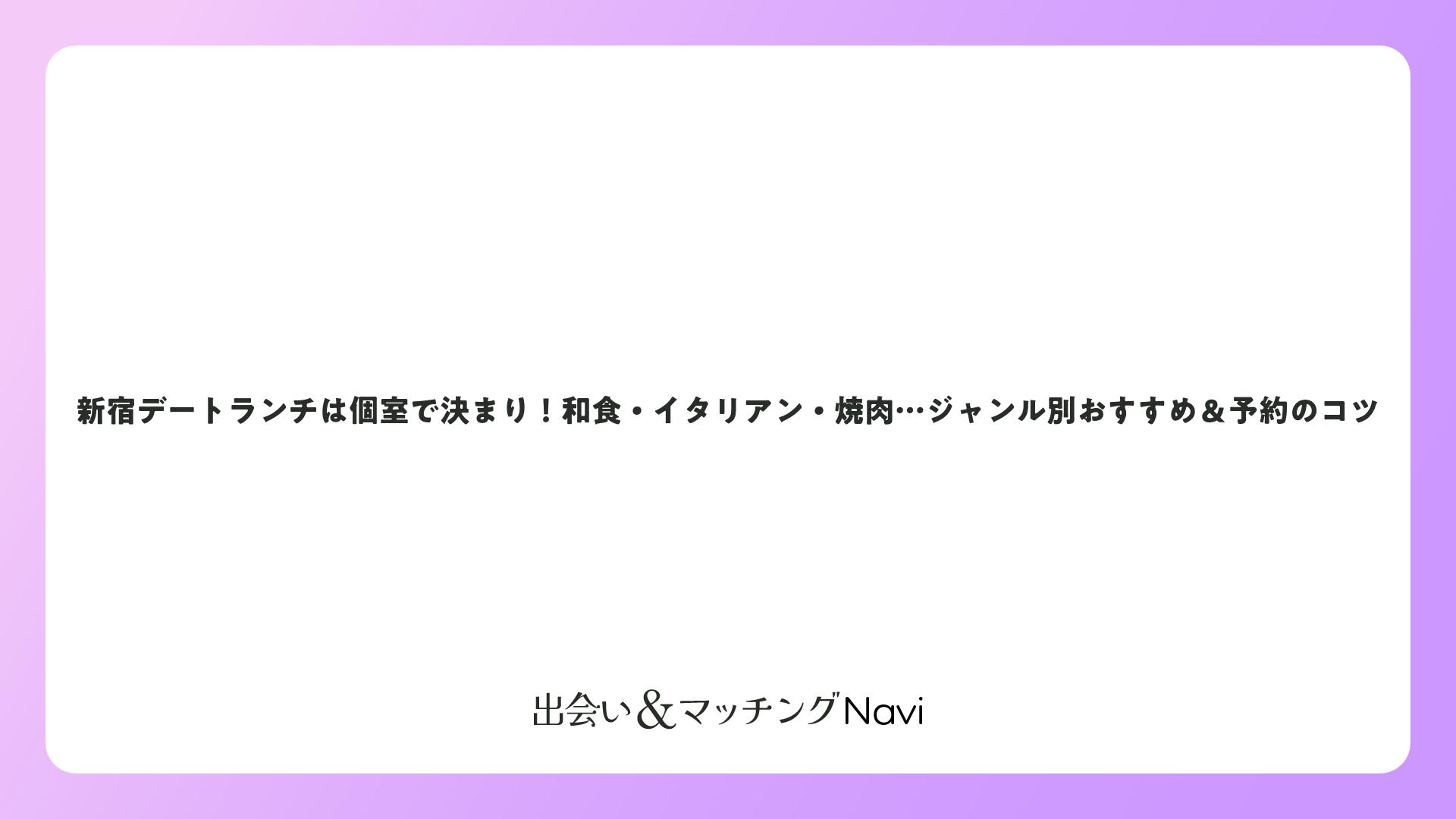 さらに、新宿の立地を活かしたアクセス抜群のお店が多く、伊勢丹やルミネ、東京都庁、新宿御苑周辺に集中。ショッピングや散策の合間に立ち寄りやすいのもポイントです。個室の種類も豊富で、完全個室から半個室、カップルシートまで選べます。子連れデートやグループデートにも対応する店舗が増え、柔軟な利用が可能です。