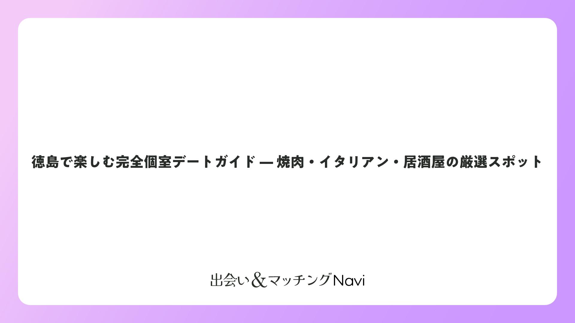 徳島で楽しむ完全個室デートガイド — 焼肉・イタリアン・居酒屋の厳選スポットをまとめました