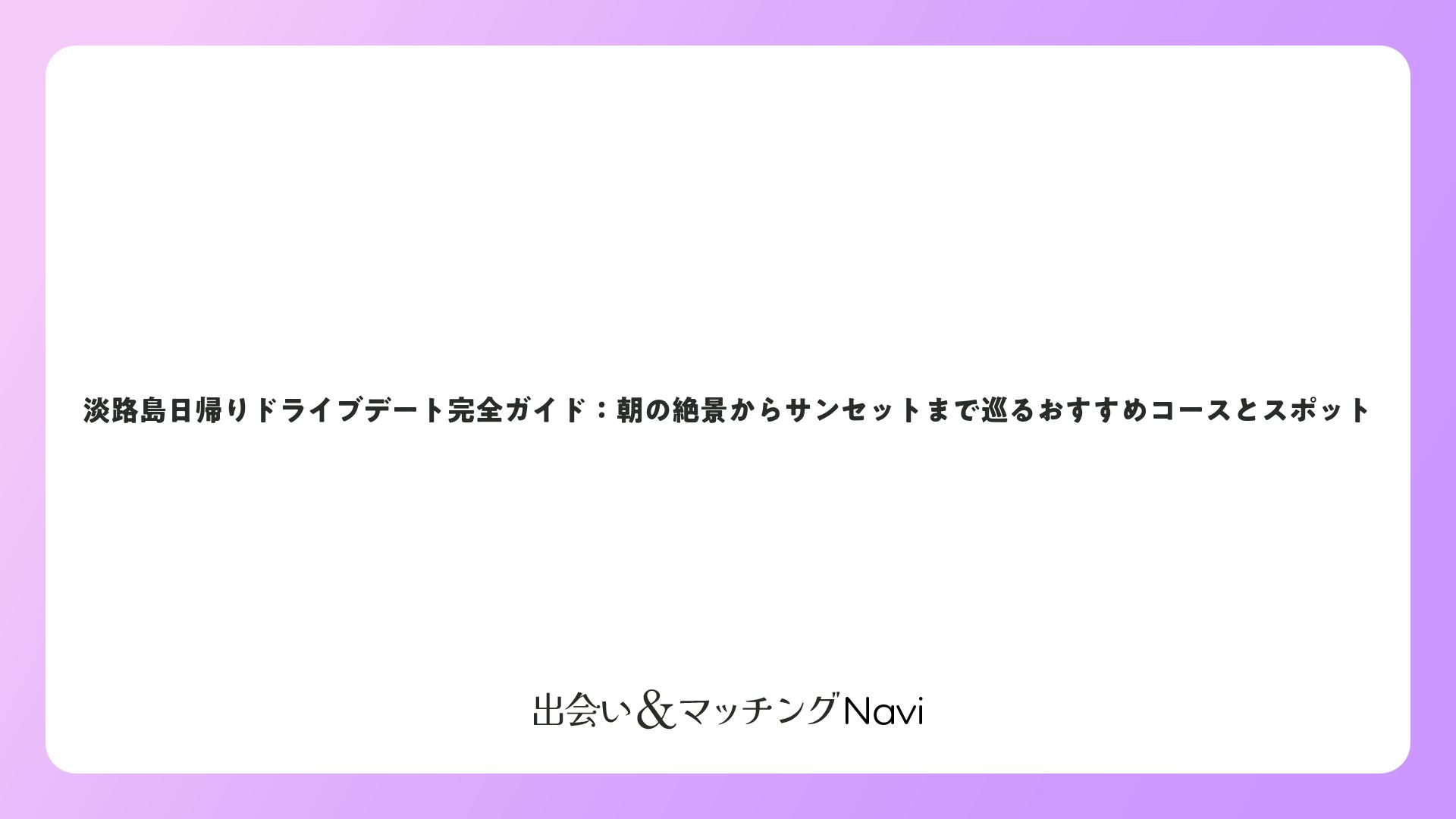 淡路島での日帰りドライブデートは、カップルにとって最高の体験になります。本記事で紹介したスポットやモデルコースを参考に、二人だけの特別な時間を過ごしてください。淡路島の自然、グルメ、歴史、エンターテインメントのすべてが、カップルの関係をより深め、新しい思い出を作るお手伝いをします。季節ごとに異なる魅力を持つ淡路島は、何度訪れても新しい発見が見つかる、魅力たっぷりの島です。ぜひ、大切なパートナーと一緒に、淡路島でのドライブデートを楽しんでください。