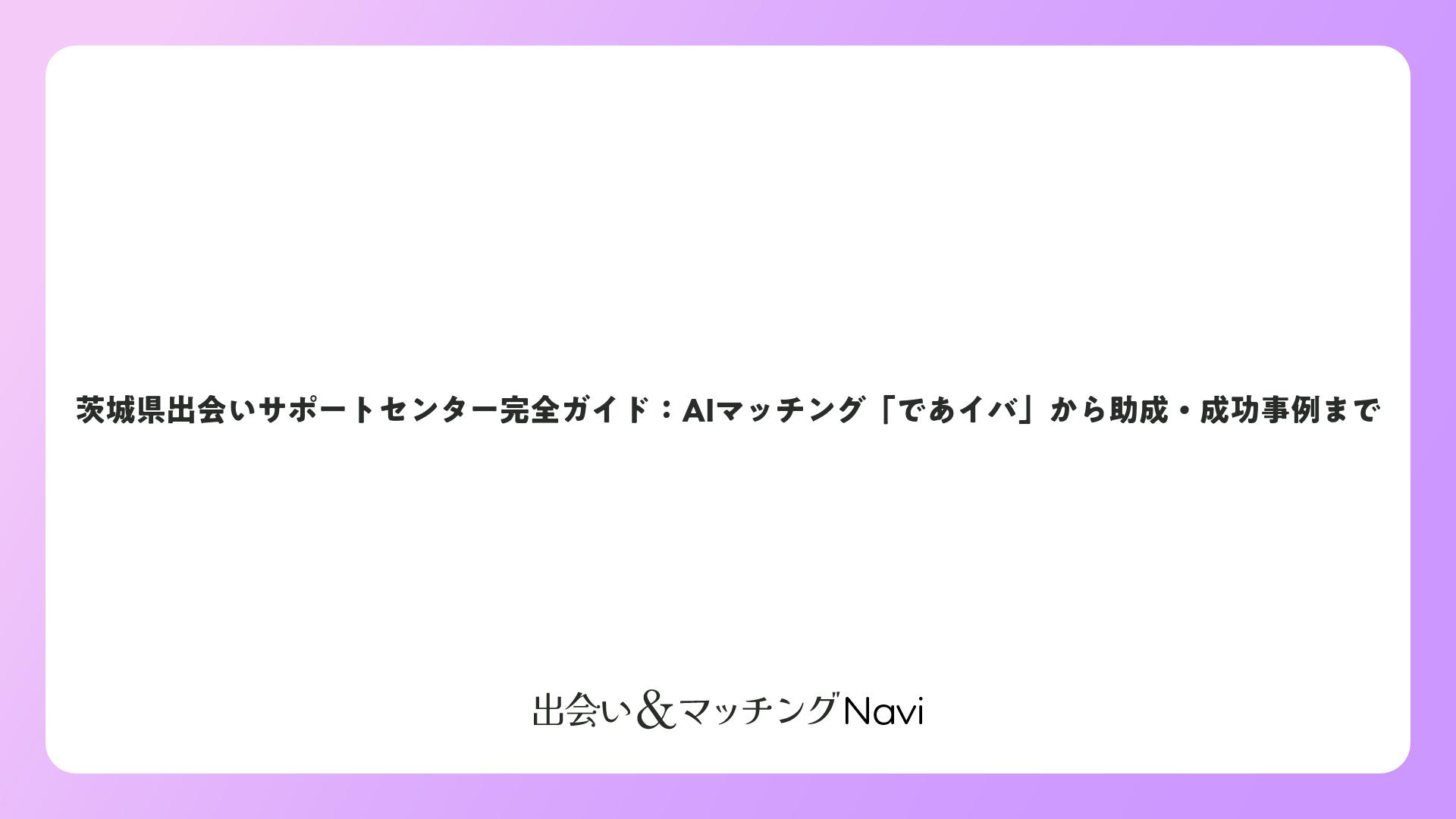 茨城県出会いサポートセンター完全ガイド:AIマッチング「であイバ」から助成・成功事例まで