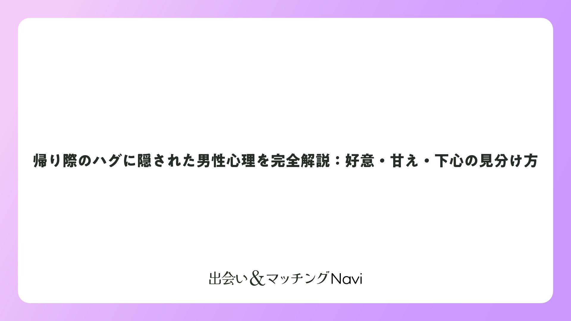 デートの終わりや別れ際に男性からハグをされると、その行動の意味が気になるものです。言葉では伝えられない感情が、ハグという身体接触を通じて表現されることがあります。帰り際のハグには、男性の様々な心理状態が反映されており、その背景を理解することで、相手の気持ちをより深く知ることができるでしょう。