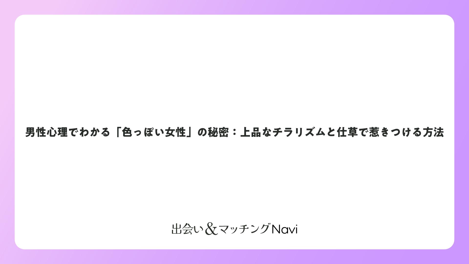 男性の心を自然と惹きつける色っぽい女性とは、派手な露出や過度なアピールではなく、内面的な魅力とさりげない仕草が融合した存在です。この記事では、複数の視点から男性心理を紐解き、そんな女性の特徴や魅力を詳しく探っていきます。あなたも日常で取り入れやすいポイントを学び、魅力アップを図りましょう。